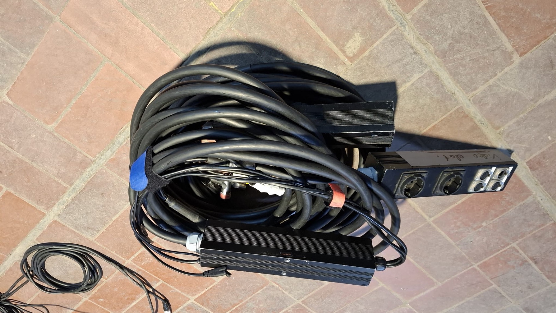 Die Stagebox mit 5 Metern ist zusätzlich mit Euro-Steckern für Schutzklasse II Geräte