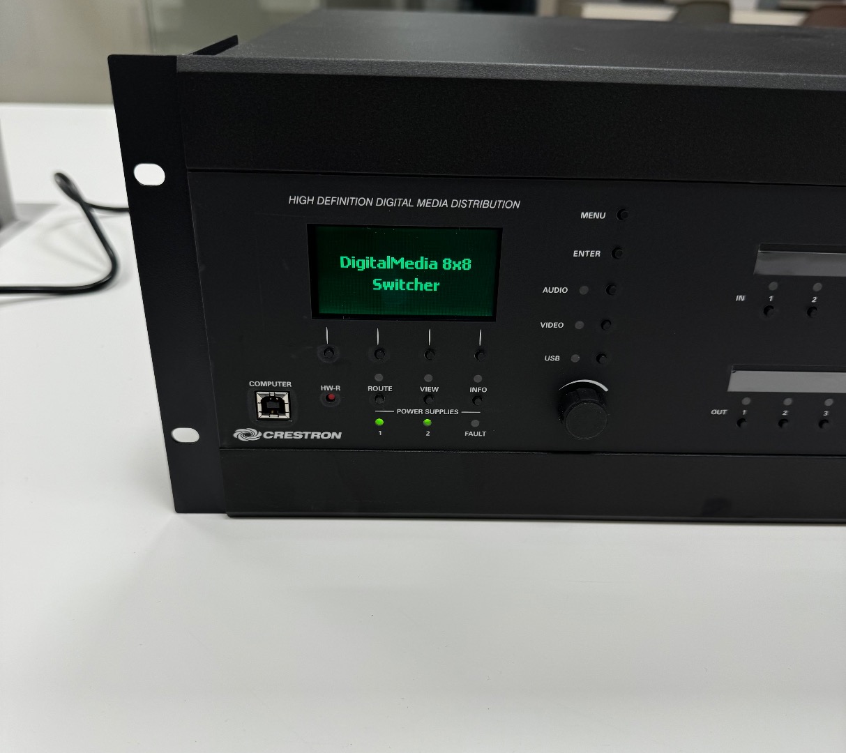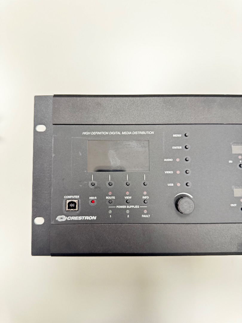 der Crestron DM-MD8X8-RPS Digital media Matrix Switcher ist in einem sehr guten gebrauchten Zustand (siehe Bilder). Er eignet sich ideal für größere AV-Setups. Durch den modularen Aufbau lässt sich das Gerät flexibel erweitern, und mit dem redundanten Netzteil bleibt der Betrieb auch bei längerer Nutzung stabil. Im Betrieb hat das Gerät keinerlei Mängel aufgezeigt. Die Umschaltung der Audio- und Videosignale erfolgt sehr schnell, während HD-Inhalte ohne Qualitätsverlust verteilt werden. Unterstützt werden nahezu alle gängigen Formate. Zu den integrierten Funktionen gehören ein umfangreiches HDCP- und EDID-Management, CEC-Signalweiterleitung, USB-Routing, ein integrierter Ethernet-Switch sowie gleichzeitige Ausgabe von 7.1- und Stereo-Audio. Außerdem wird H.264-Streaming unterstützt, was den Switcher zu einer flexiblen Lösung für Heimkino, Studio oder professionelle Installationen macht. Originalverpackung undHerstellerbeschreibung sind leider nicht verfügbar. Ein Netzkabel ist dabei.