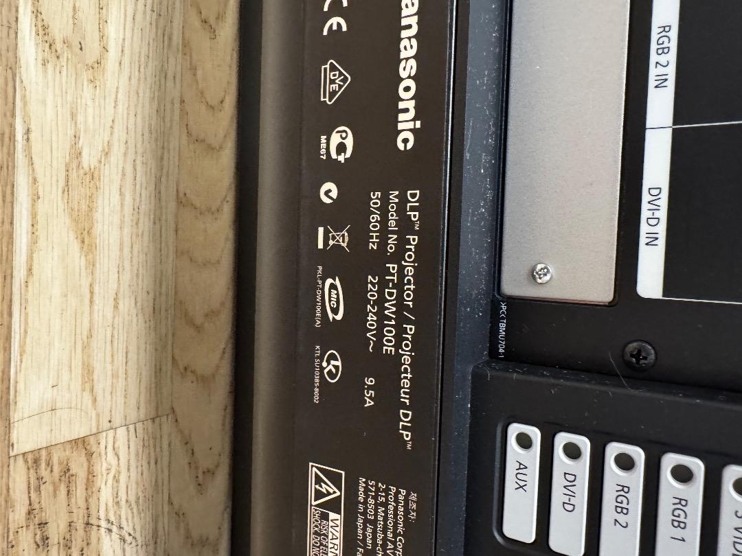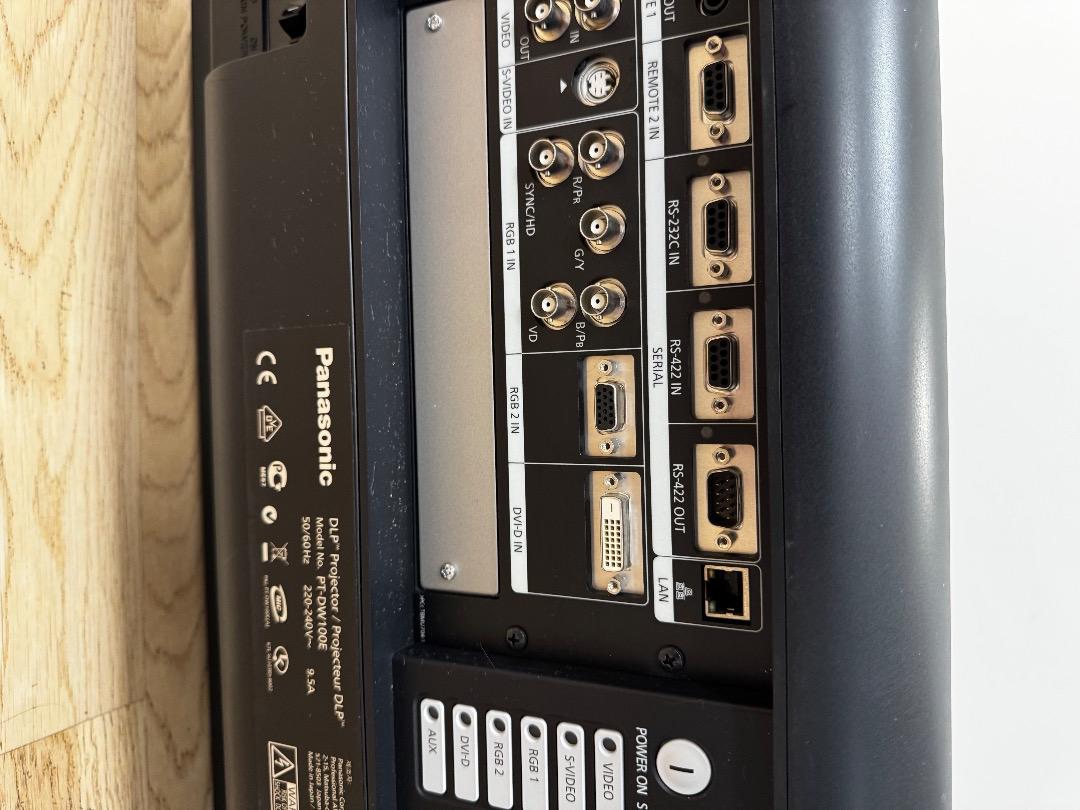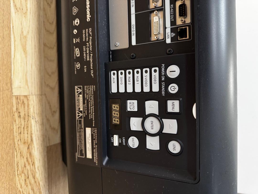 For sale is a Panasonic DLP projector, model PT-DW100E DW100 WXGA. It is in very good used condition (see pictures). It has a brightness of 10,000 ANSI lumens – ideal for large projections up to 10 meters wide (1016 cm). Resolution: WXGA (1366 x 768), contrast ratio 5000:1. Thanks to the integrated lens shift function, flexible image alignment is possible without loss of quality. Perfect for events, presentations, or home theaters with high light output. Original packaging, manufacturer's manual, lens, and other accessories are not included. The projector had 221 lamp hours when the lens was last installed. The projector is being sold because I have purchased a new one. It worked perfectly and performed reliably until recently.