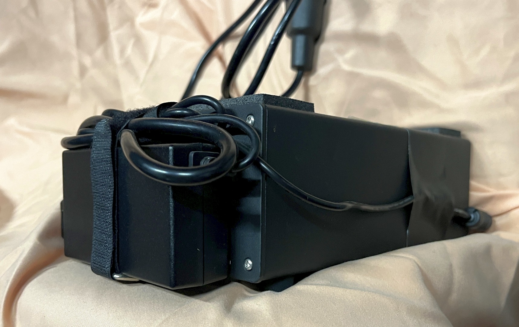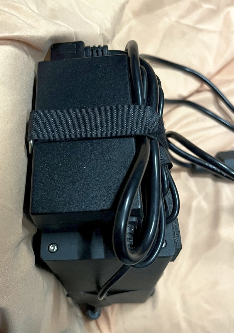 Netzteil ist mit dem Gehäuse per Klettband verbunden, kann einfach abgezogen werden.