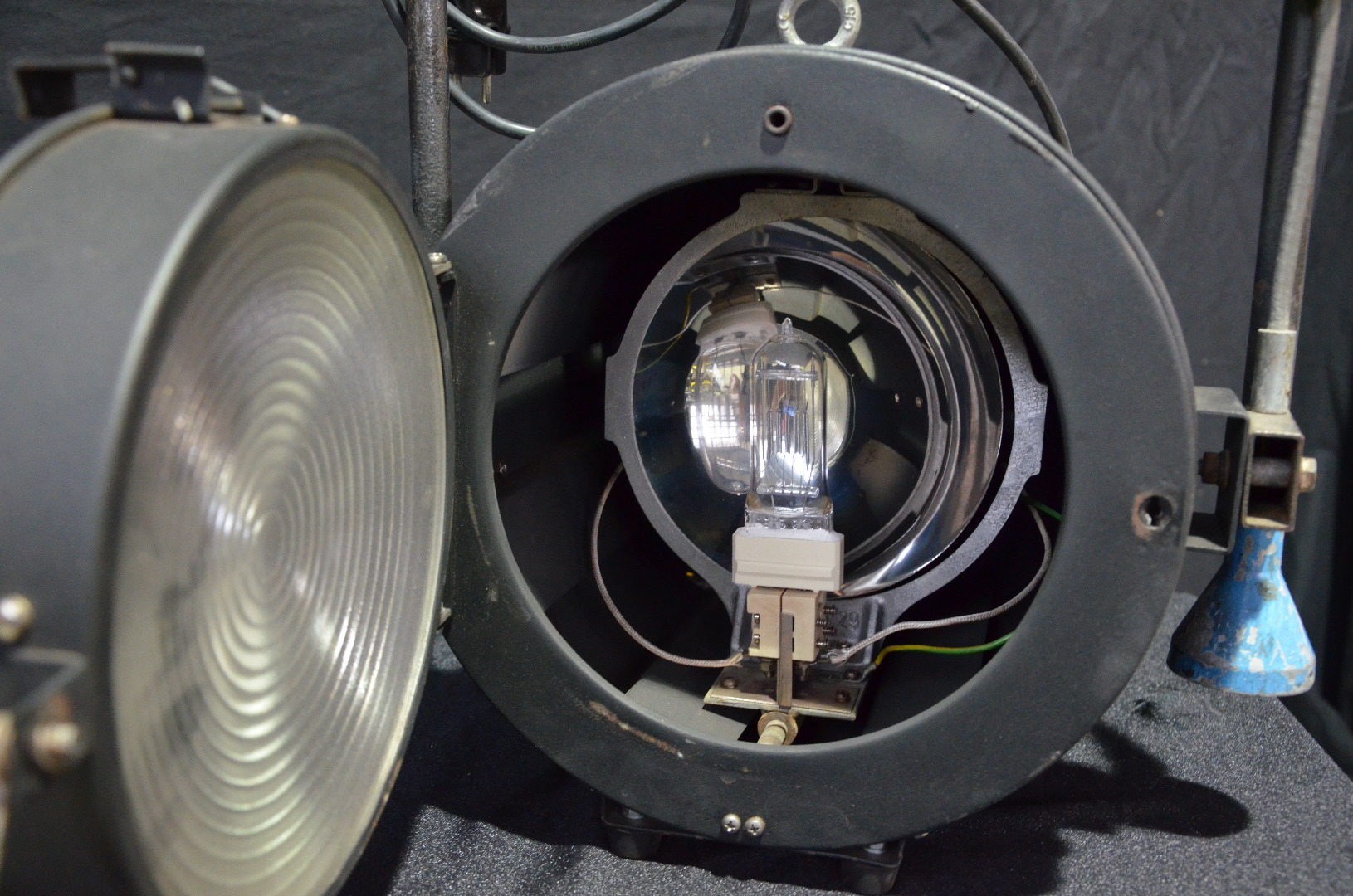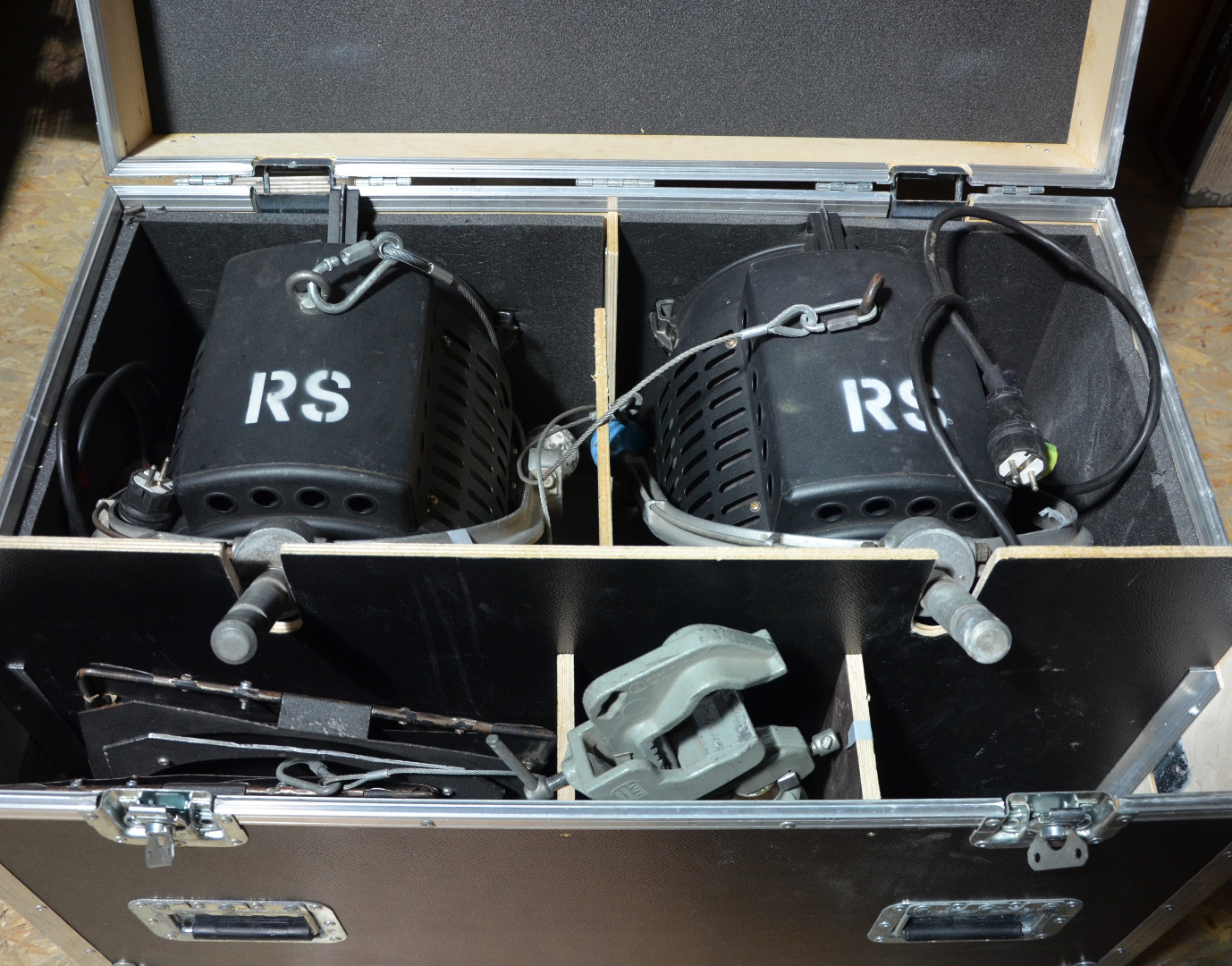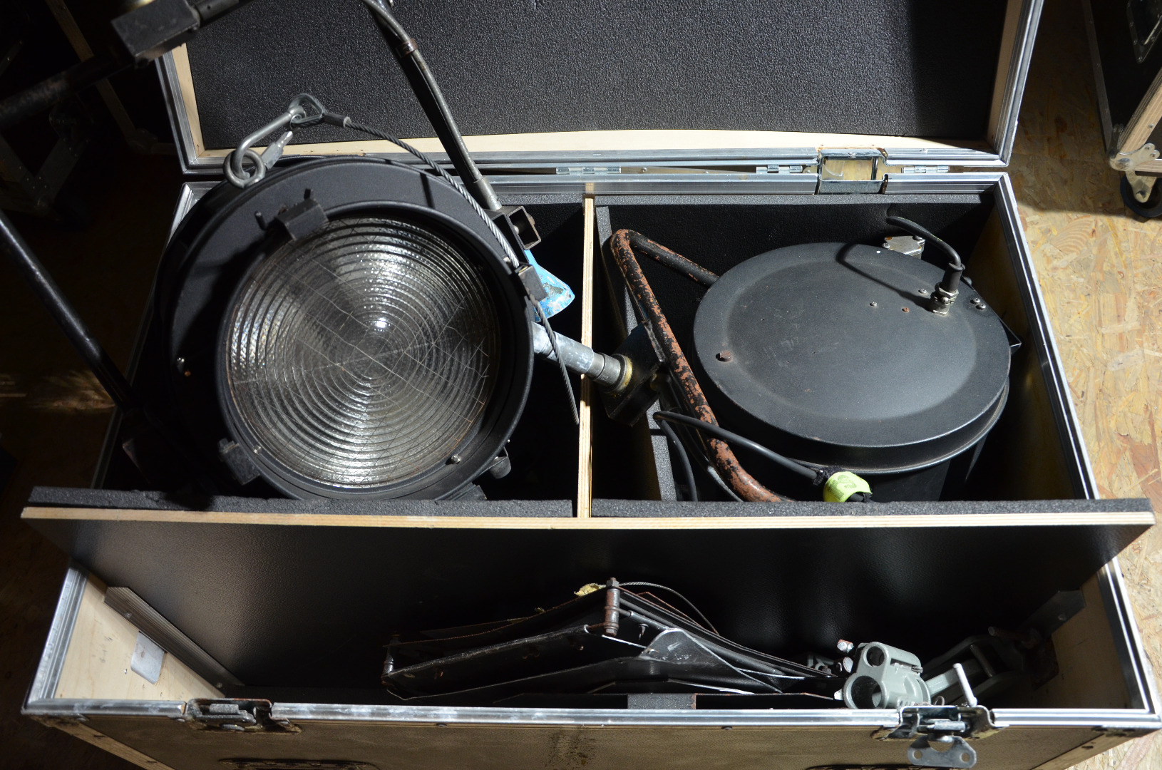 Set: Case mit je 2 Stk. Deltschaft Fresnel 2kW Scheinwerfer Stangen bedienbar