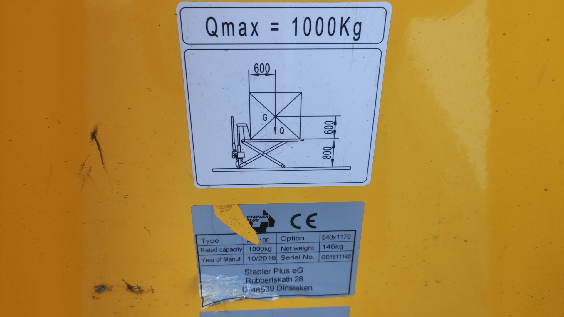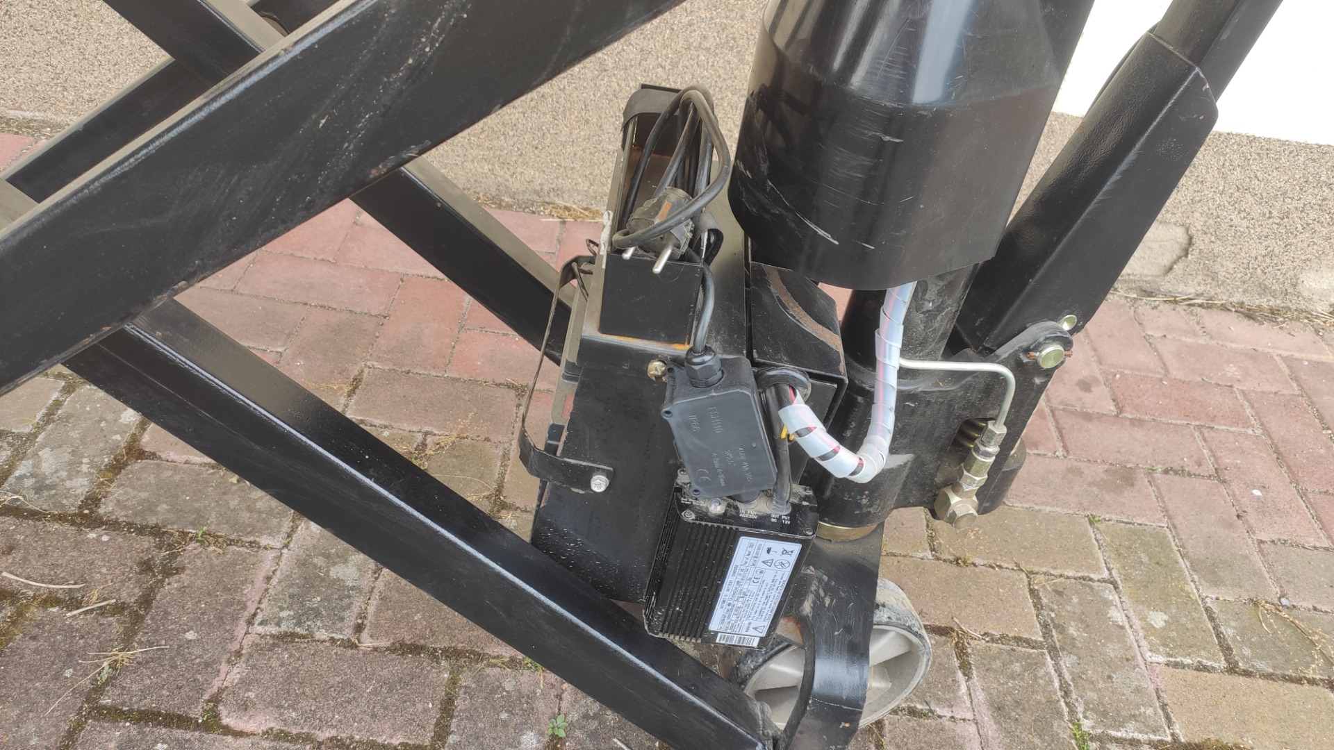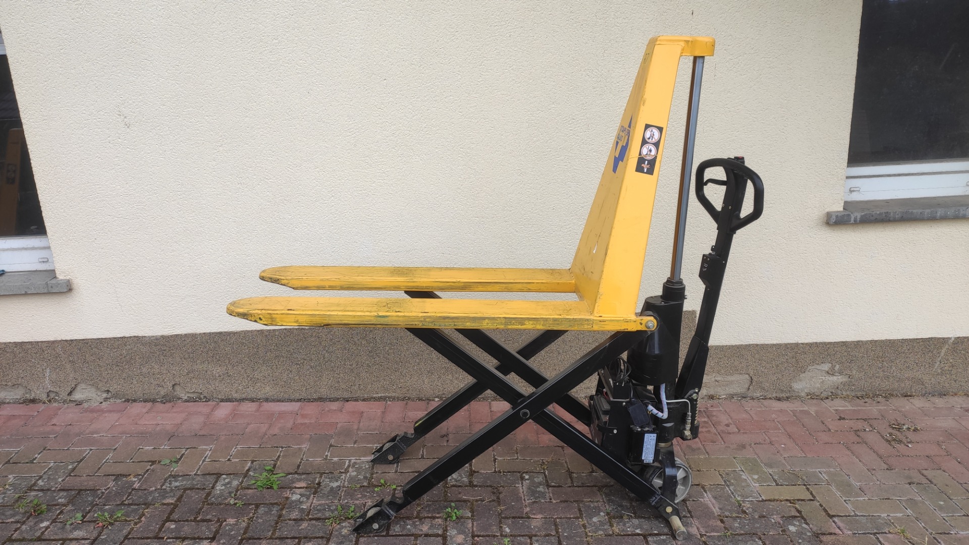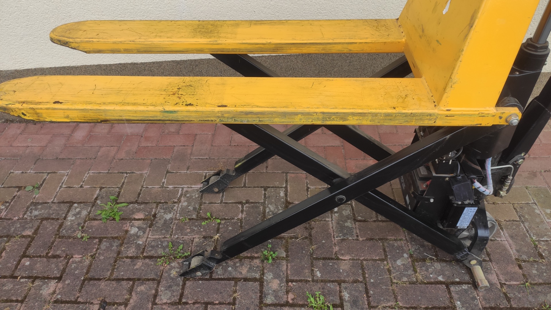 Zum verkauf steht ein elektrischer Scherenhubwagen mit 1000kg Belastbarkeit und 80cm Hubhöhe.