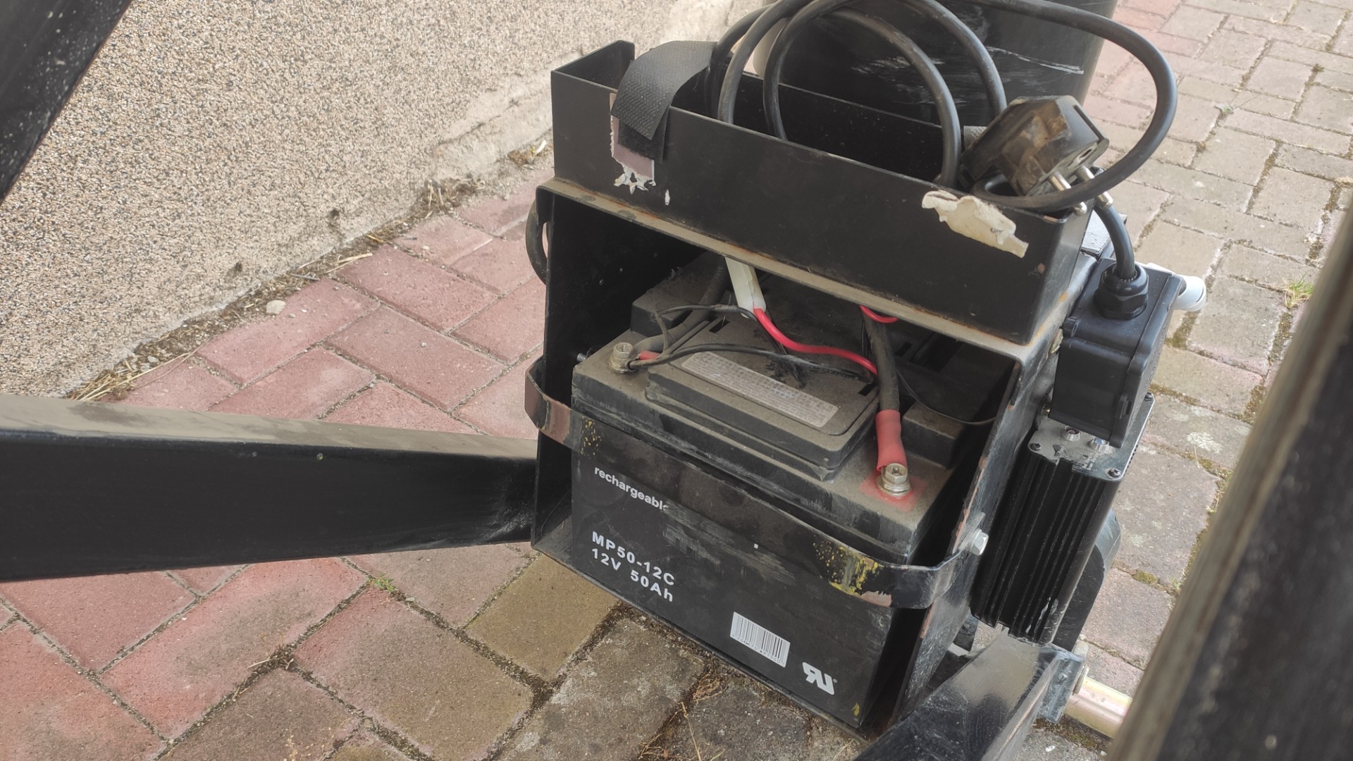 Versorgt wird der Hubwagen durch eine 12V Batterie. Ladegerät ist am Hubwagen montiert.