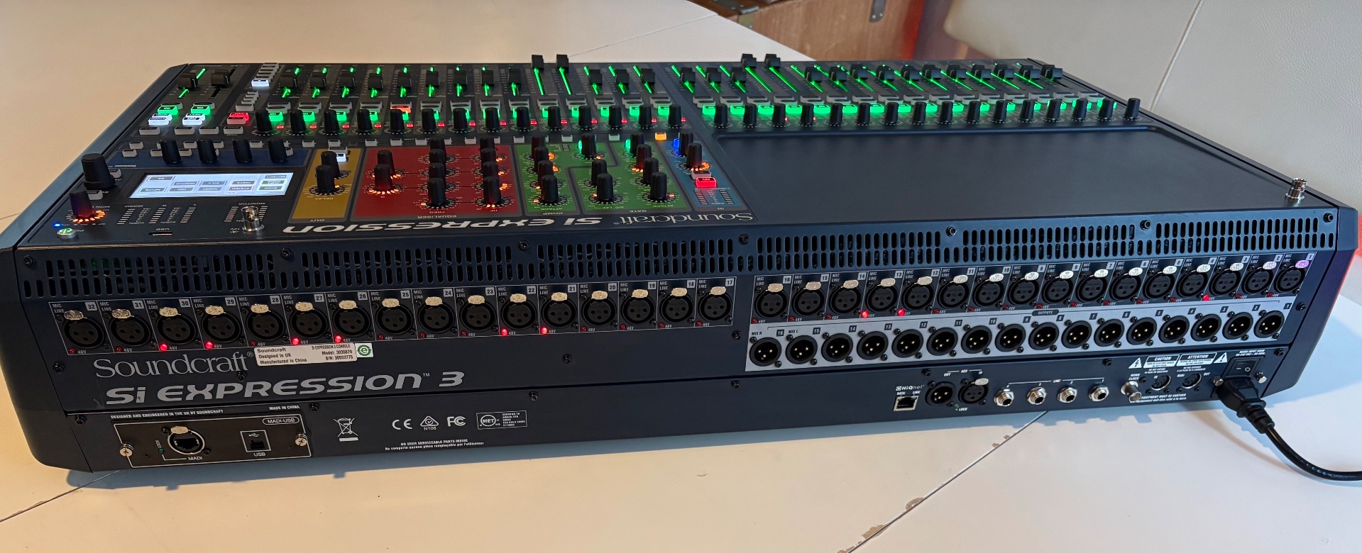 Ich verkaufe ein gut gepflegtes Soundcraft Si Expression 3 Digitalpult, inklusive Transport-Case von Thon. Zusätzlich ist die Erweiterungskarte mit USB und MADI eingebaut, sodass man bis zu 32 Kanäle je In&Out übertragen/aufnehmen kann.