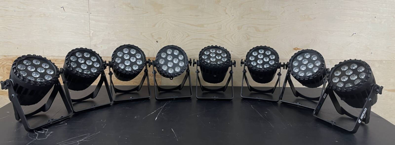 Set of 8 LED units, each equipped with 12 RGBWYUV LEDs and a 30-degree lens. Includes power cable. Equipment has been exclusively used in-house and is regularly maintained, ensuring optimal performance and reliability.
