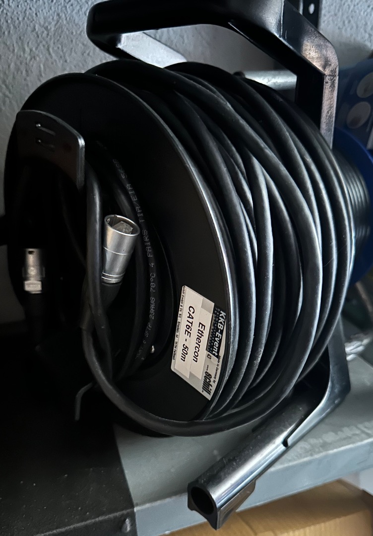 Es handelt sich um ein 50m pro snake (Thomann) Ethercon Kabel, auf einer Schill GT 235.RM Kabeltrommel.