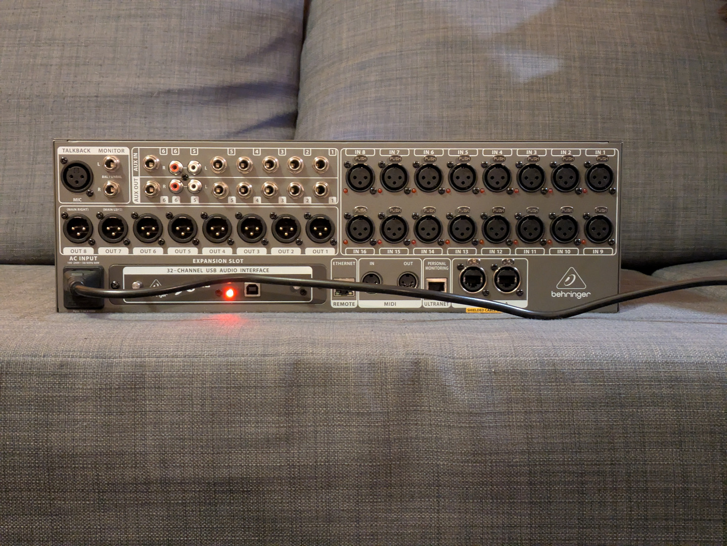 Lieferumfang: 1x Behringer X32 Rack, 1x Behringer X-USB-Karte, 1x Kaltgerätekabel
