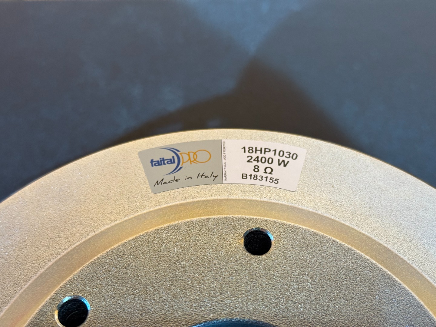 Bestückt mit: 1x Faital PRO / 18HP1030 2.400W 8 Ohm