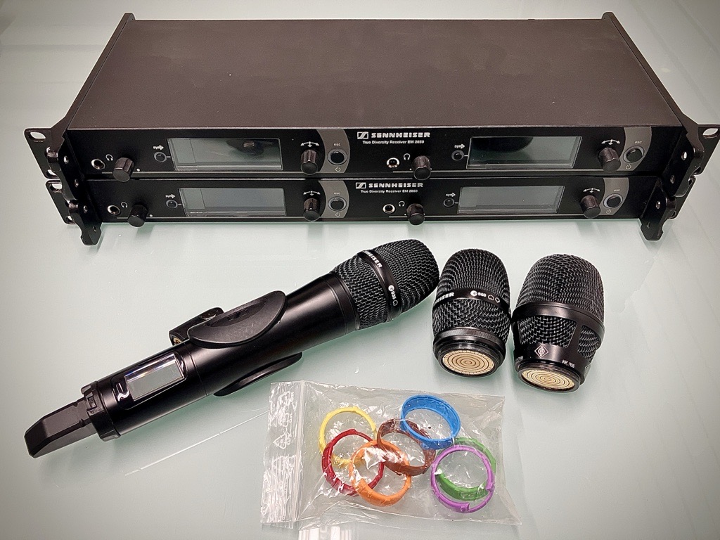 Wireless microphone set consisting of two EM2050 receivers (516–598MHz), one SKM2000 handheld transmitter with a 935 capsule, and one Neumann KK205 capsule. Suitable for professional audio applications requiring high-quality wireless transmission and versatile capsule options.