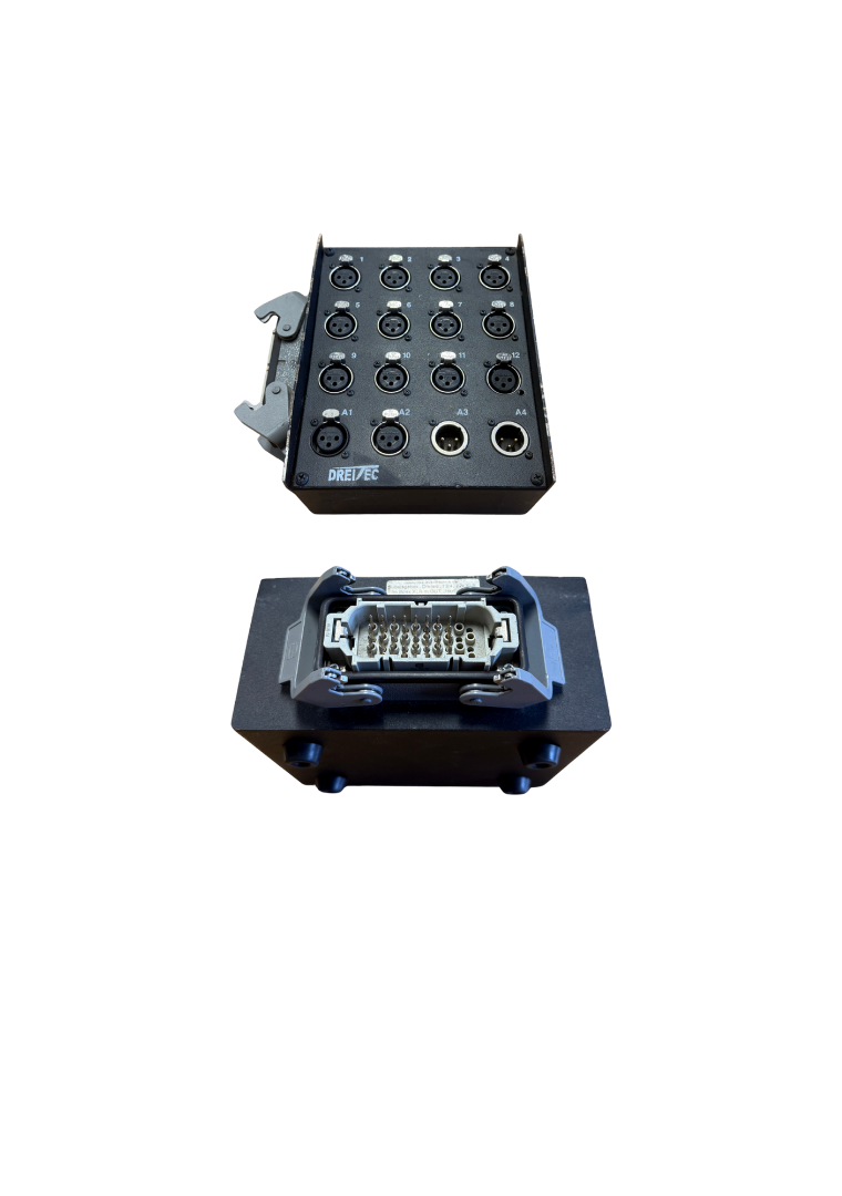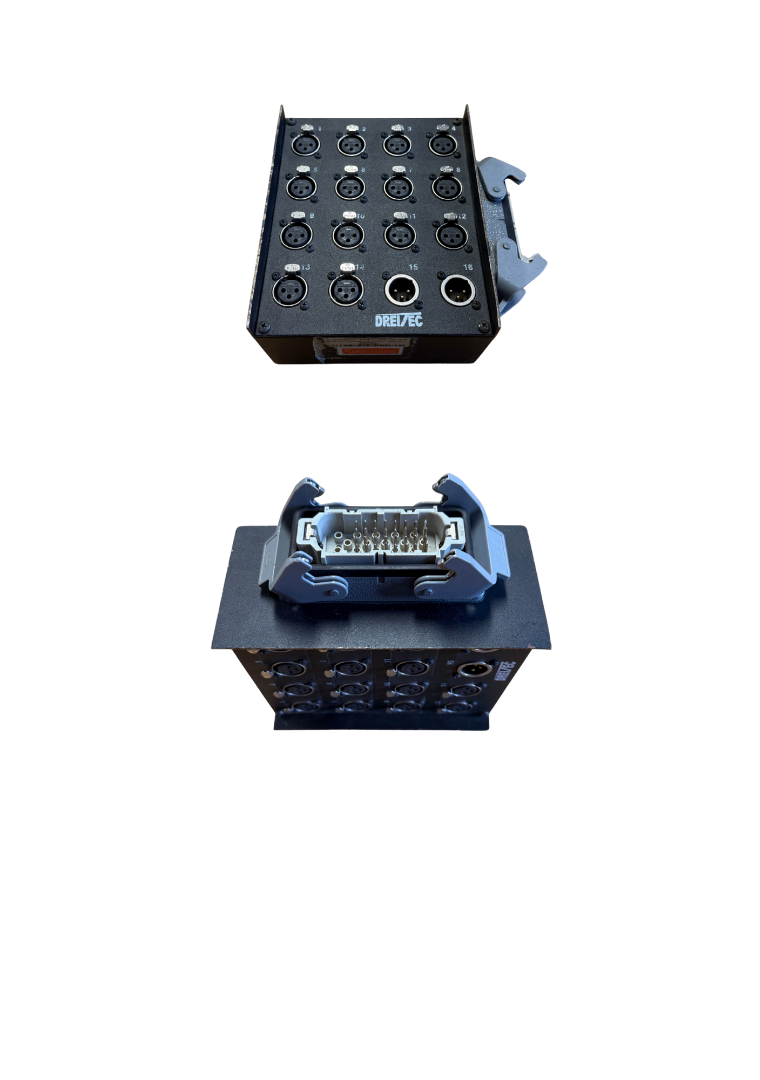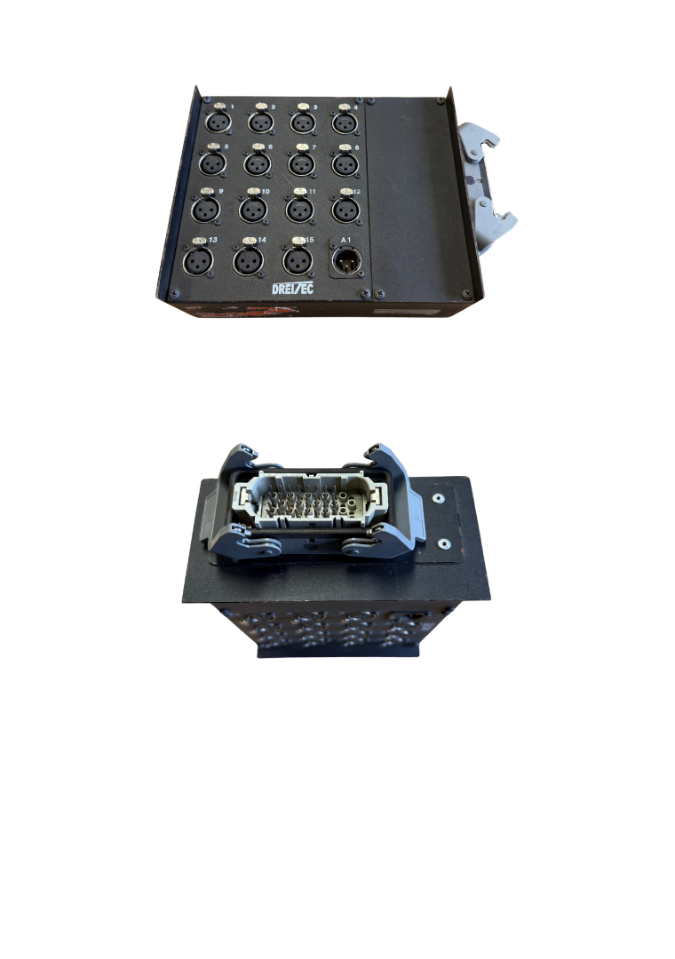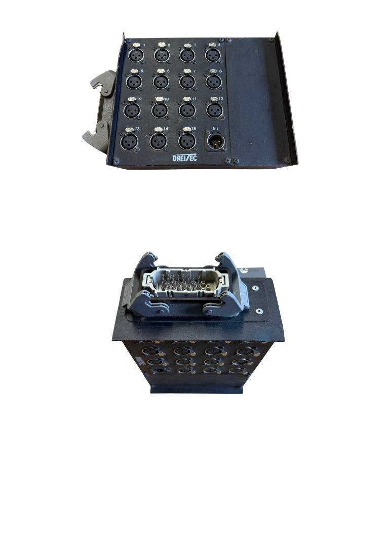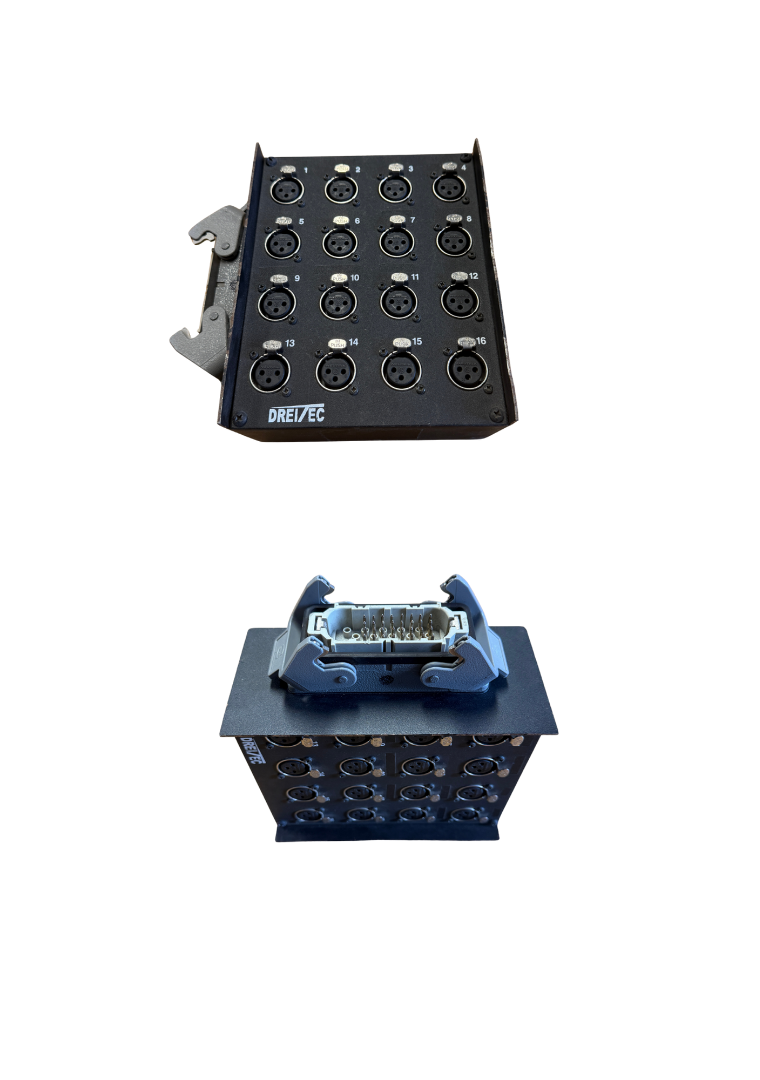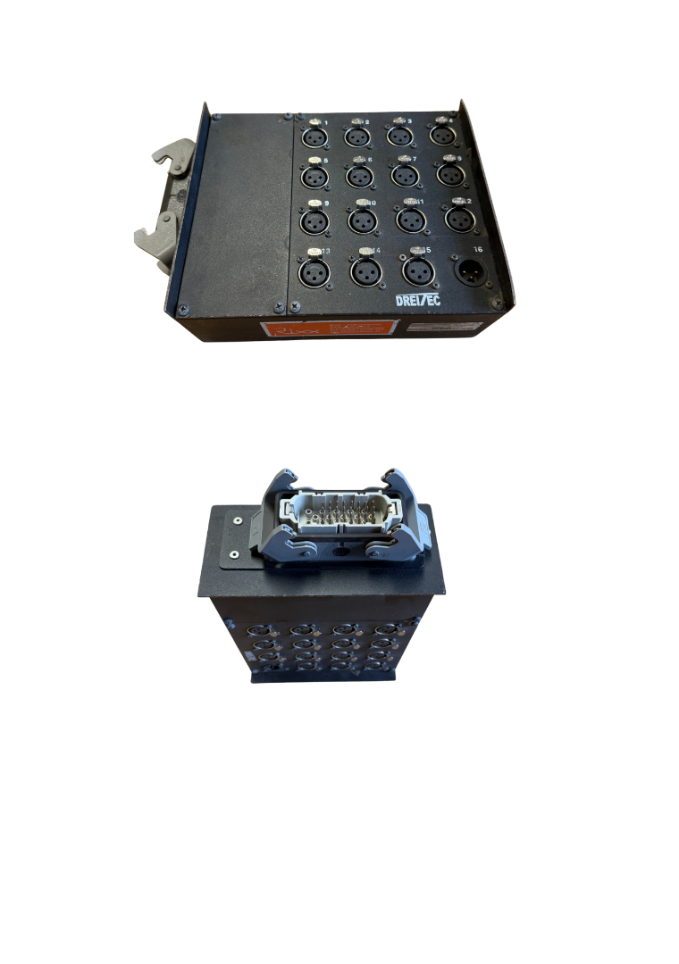 4x Substagebox , Dreitec , 15/1 , 15x XLR fm IN/1x XLR m OUT , Harting 40p IN seitlich , schwarz 130,00 € netto