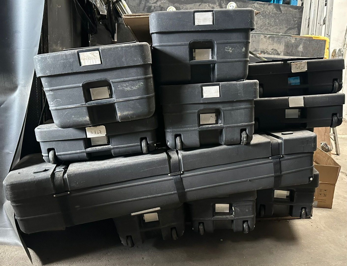 For perspective, the 14 units of 4.9m × 8.4m Fast-Fold screens alone retailed for more than €100,000, asking price for the entire lot is €30,000 to reflect the as-is sale condition.