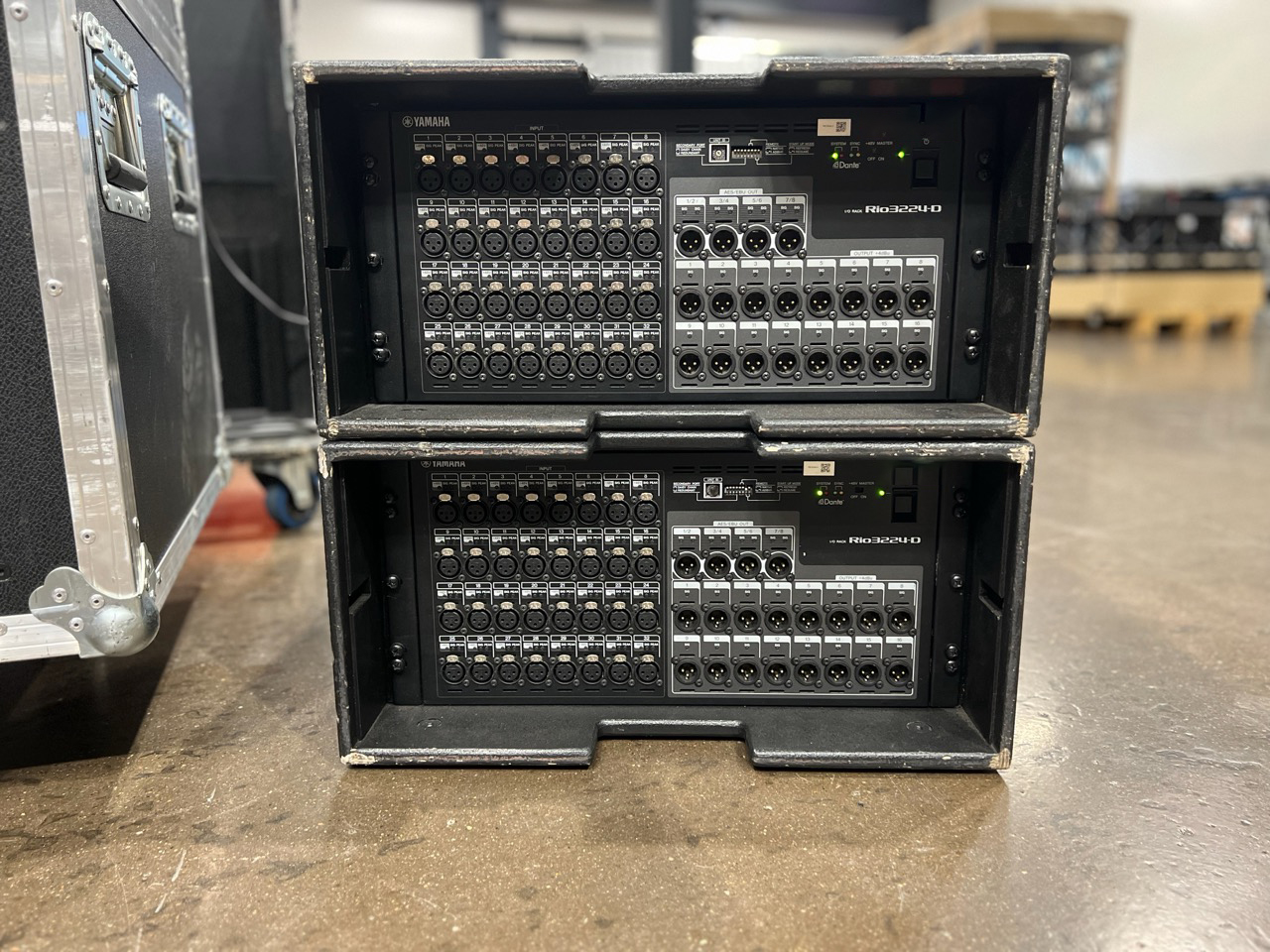 Includes a digital mixer with flight case, two digital stage boxes (without rack), power cable, and a desk lamp. The equipment has been regularly maintained by authorized service for reliable operation.