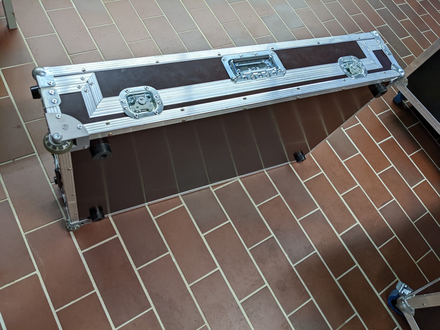 An einer Seite befinden sich zwei Rollen, sodass man das Case auch wie einen Koffer hinter sich her rollen kann.