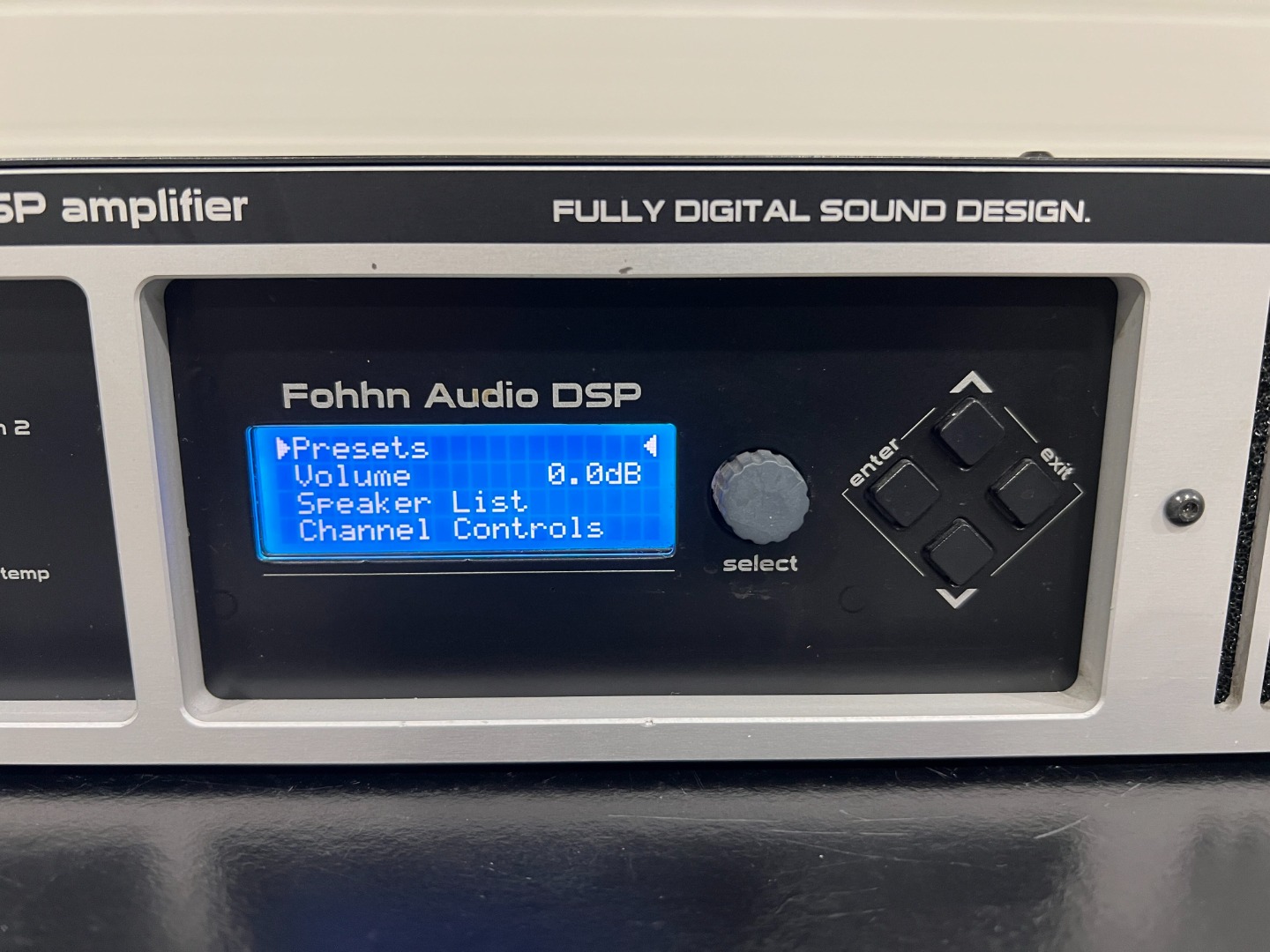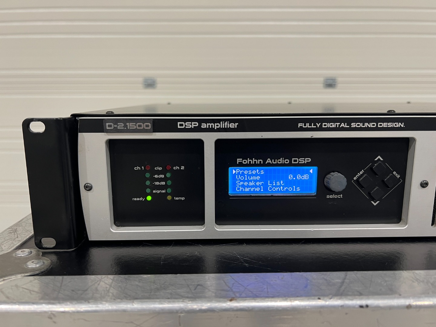 - 1x Fohhn Audio D-2.1500 DSP 2x1500W/4Ohm amplifier (32.935h)