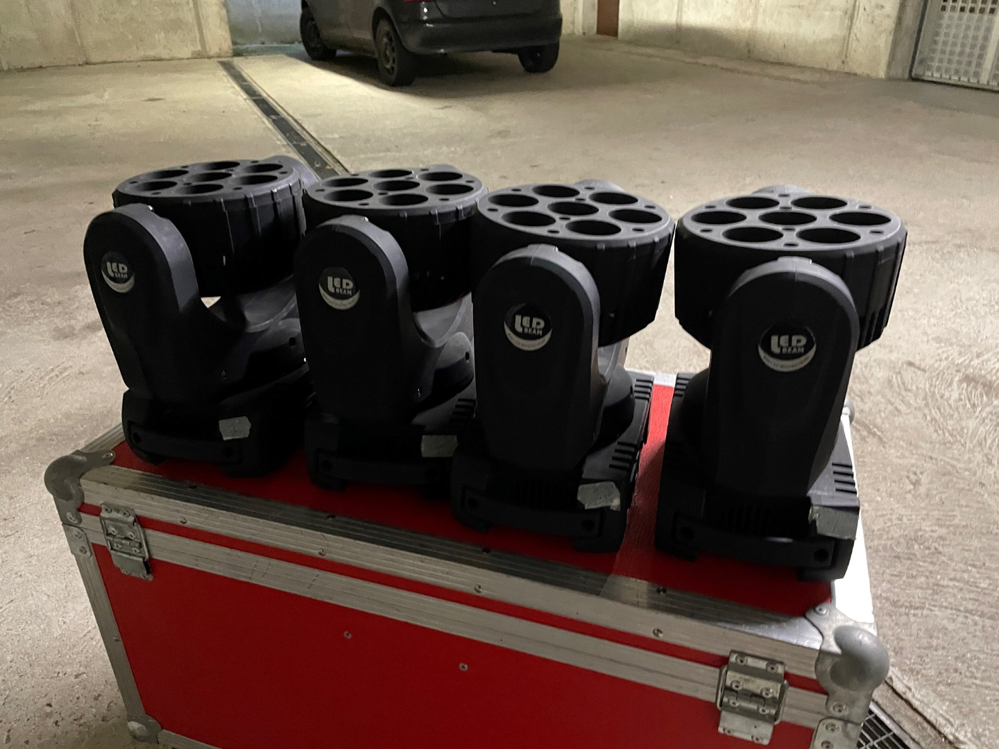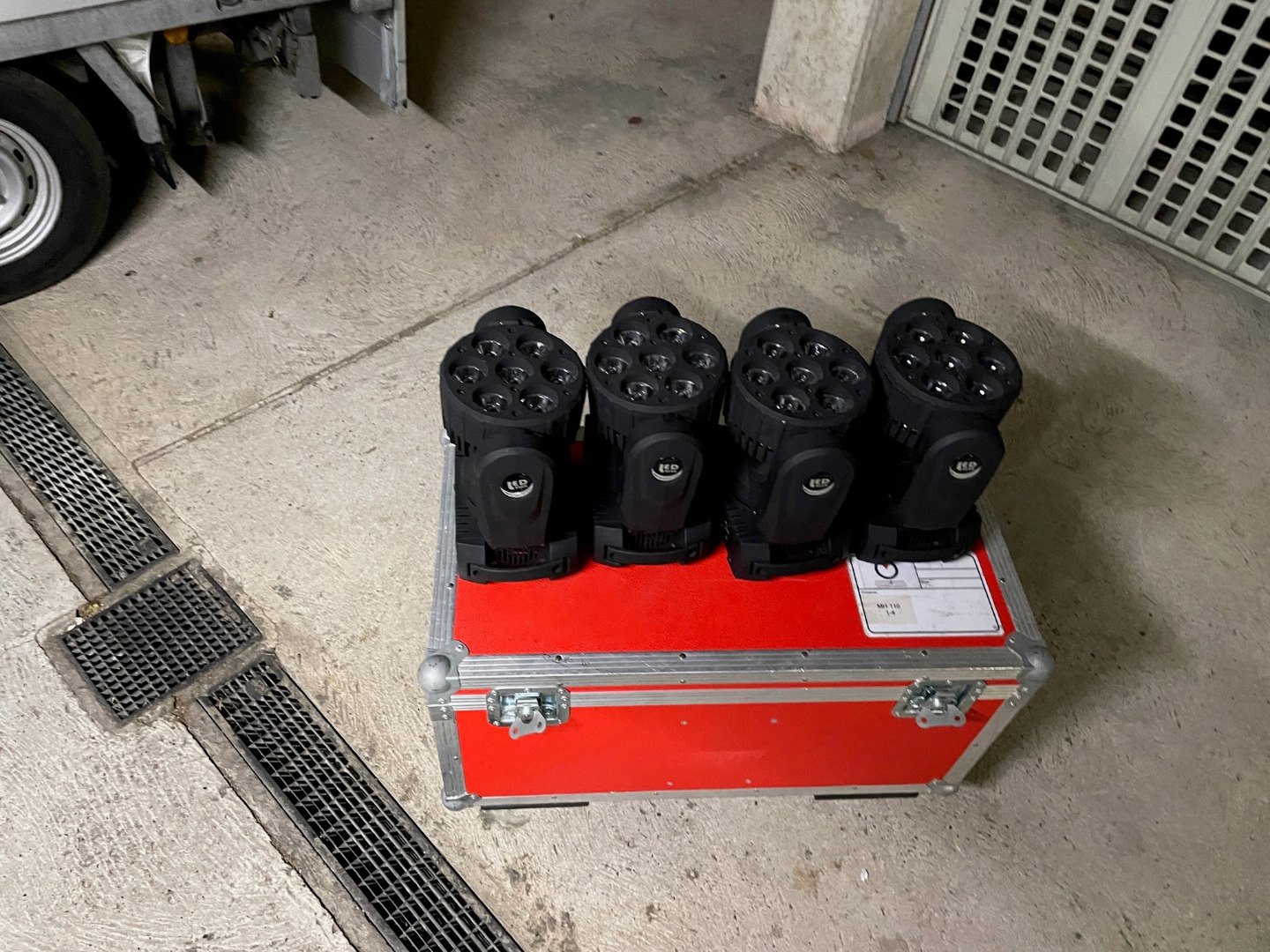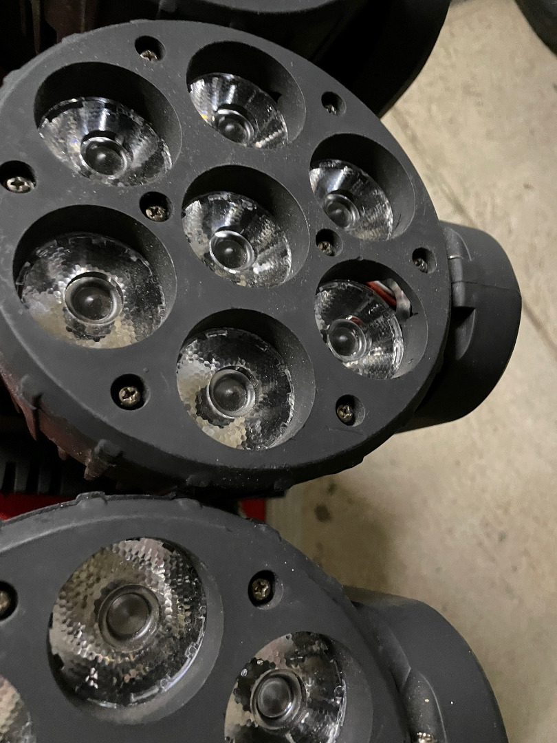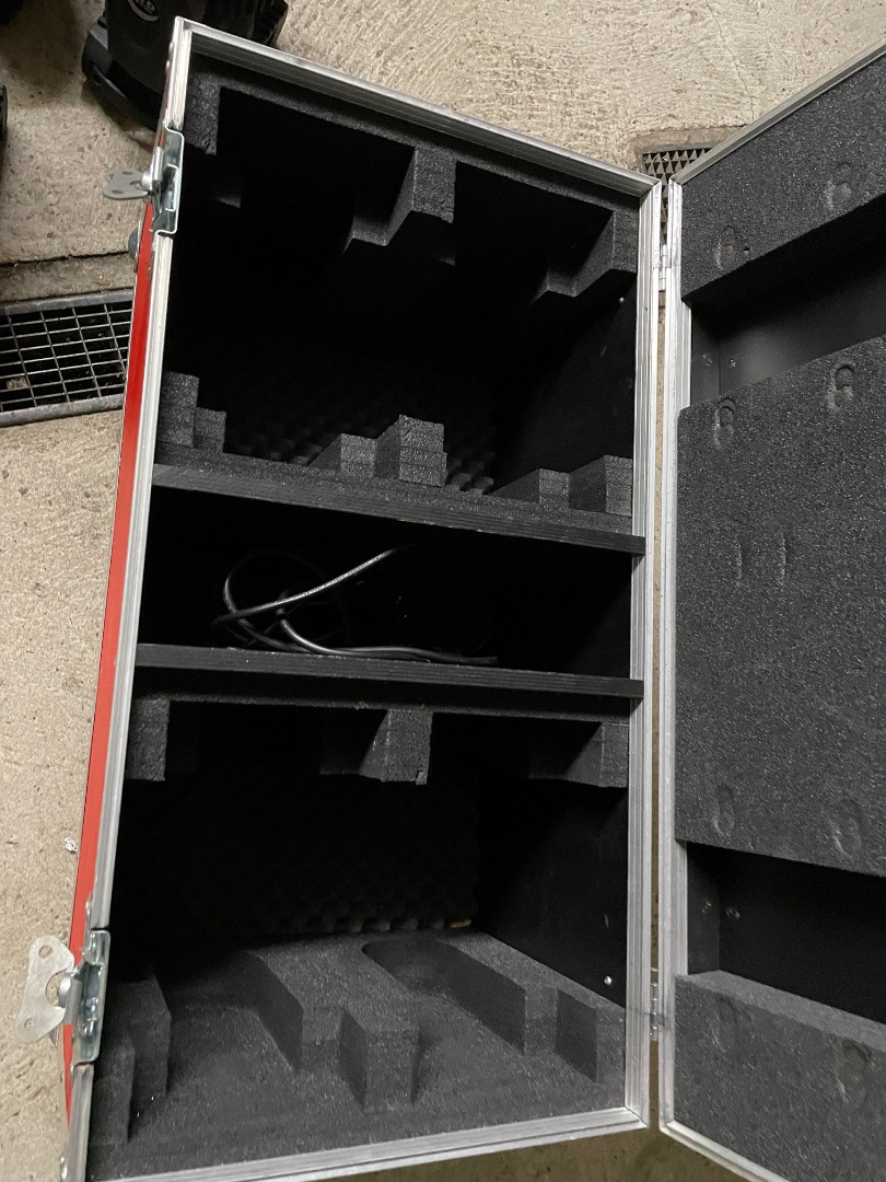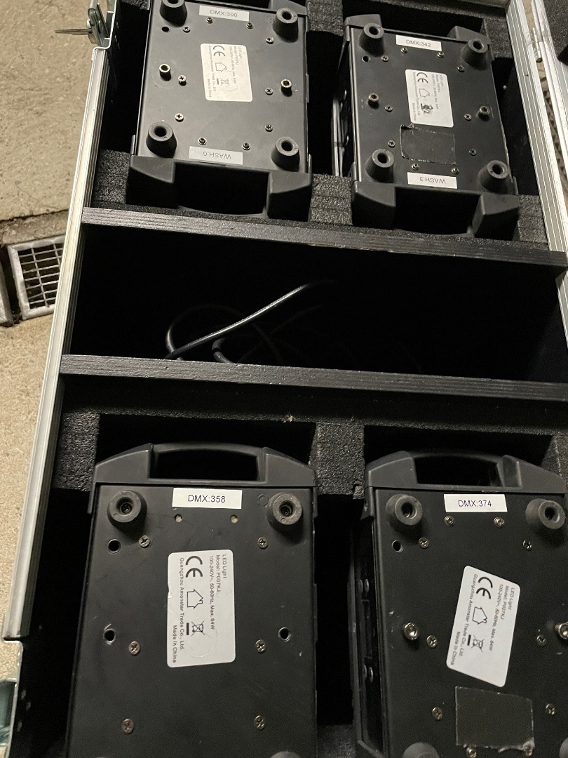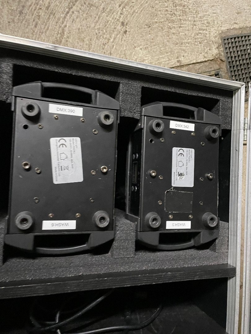 bei einem Washer ist eine Linse Defekt. Mit dabei ist ein Amtliches Case in Rot. Sie sind Baugleich wie die erste Reihe der MH110 von Stairville, ob die DMX belegung gleich ist kann ich nicht sagen.
