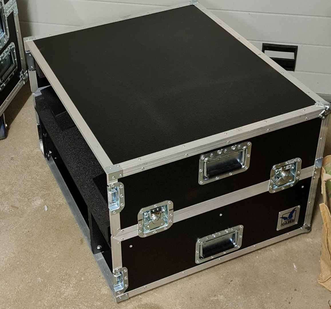 Aufgrund von Umstellung verkaufe ich hier mein sehr gut erhaltenes Amptown MA3 OnPC Command Wing Case. Unter dem Platz fürs Pult ist ein 4 HE Rack verbaut um einen 3 HE PC und eine 1HE Schublade für Tastatur oder ähnliches unter zu bringen. Damit der PC genug Luft bekommt sind hinten im Case Luft Auslässe inkl. Filter eingelassen. Das Fach rechts neben dem Rack eignet sich gut für das Kabelmanagement für zum Beispiel Mehrfachsteckdose oder ähnliches, sodass man nur noch Strom und DMX ans Case legen muss und man ist sofort Einsatz bereit. Die Maße inkl. der beidem Deckel sind ca. 75 cm x 77 cm x 49 cm.