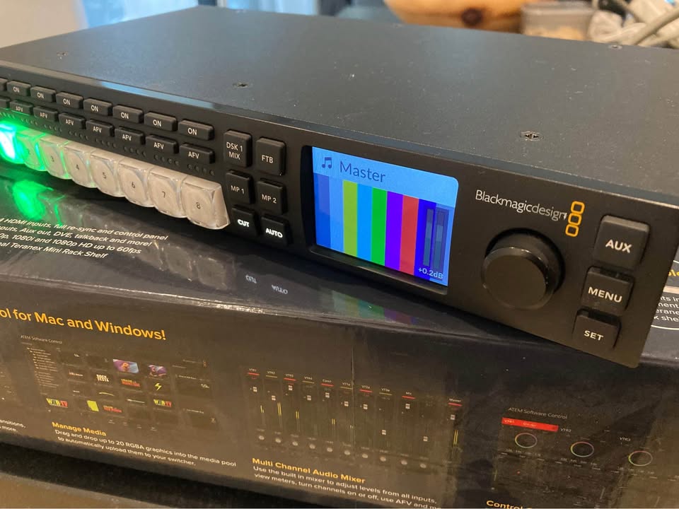 Zum Verkauf steht ein neuwertiger Videomischer von Blackmagic Design.