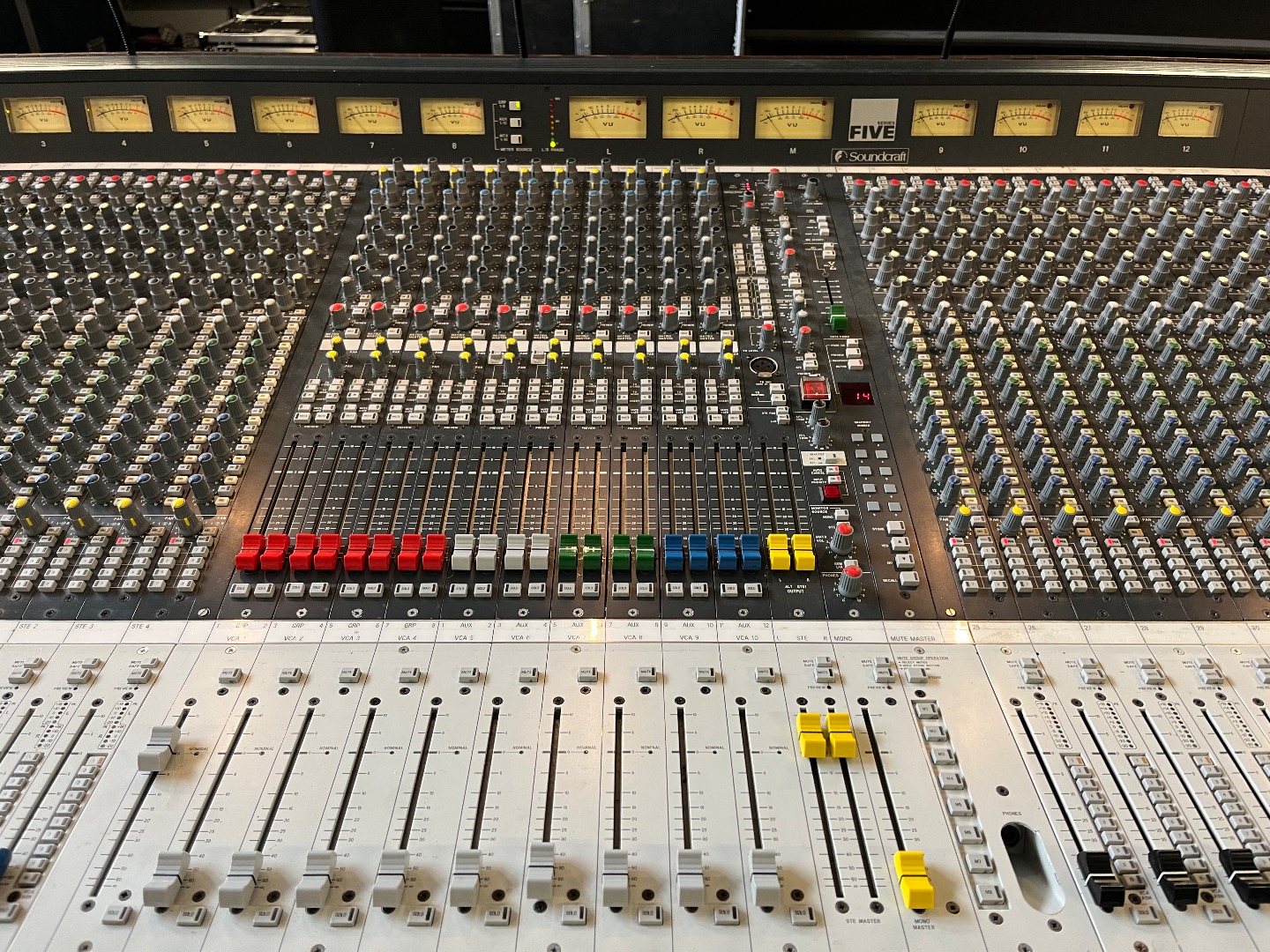 Series Five war die max Ausbaustufe bei Soundcraft 6 Band Klangregelung, 12 Auxwege, 10 VCA, 8 Subgruppen , 4 Stereokanale LCR paning