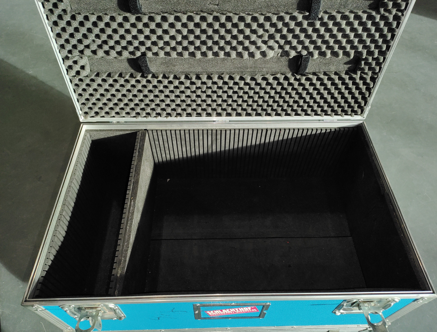 Innenauskleidung mit Schaumstoff. Trennbretter nur noch teilweise vorhanden.
