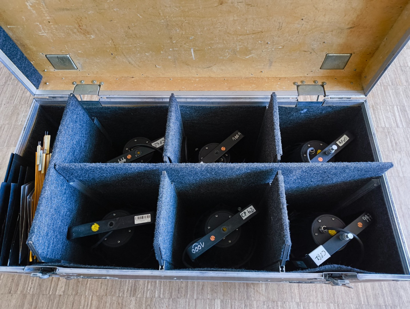 Flightcase mit 6x DTS Outdoor 1 kW Scheinwerfern inkl. umfangreichem Zubehör.