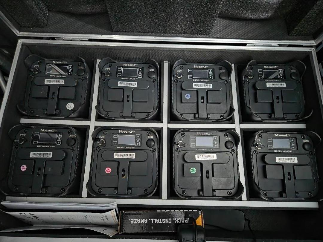 Ich biete hier ein komplettes Set Beamz BBP54 Akku LED PAR Scheinwerfer (8 Stück) inklusive originalem Ladecase an.