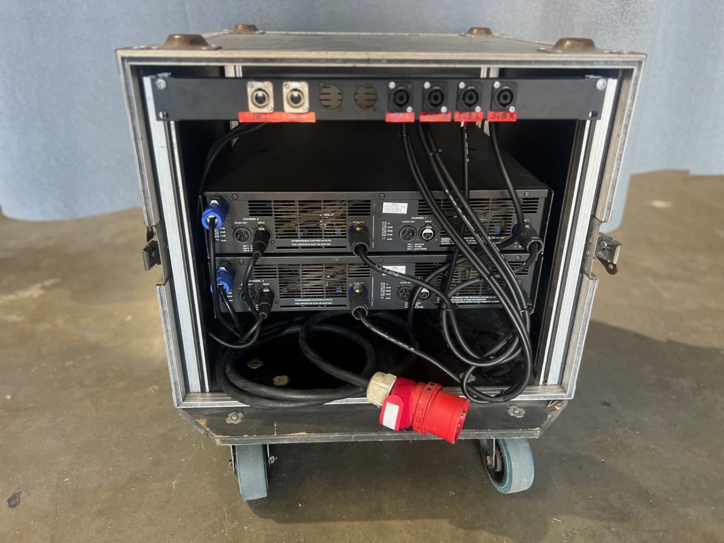 Verkaufe aus unserem Demobestand ein Endstufenrack mit 2x ECLER DT 6800 Endstufen, 19" Stromverteiler, 2 Deckelrack mit gebremsten Rollen und Zubehör, siehe Bilder.