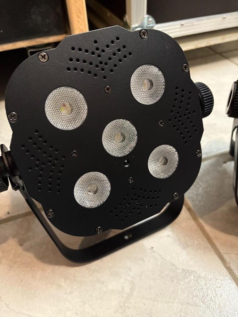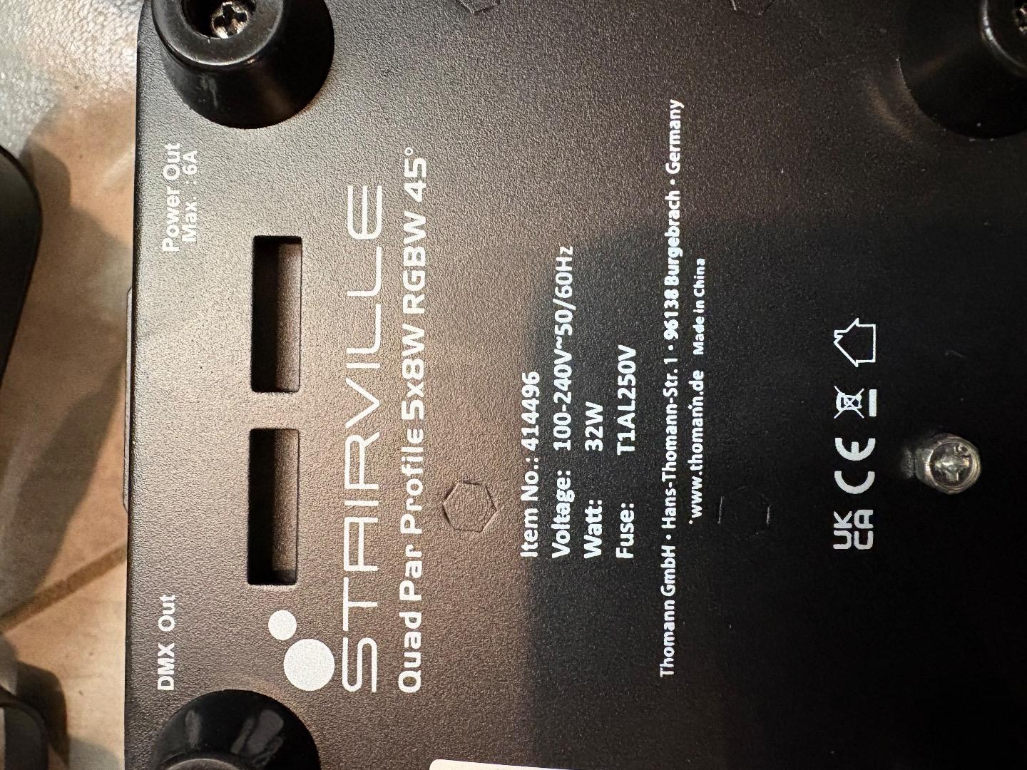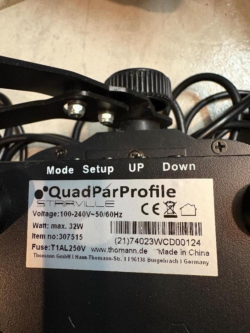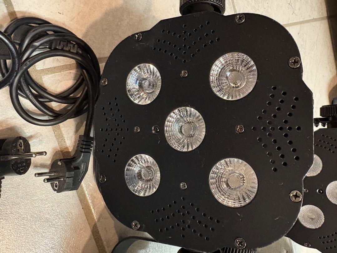 Hätte Quad Pars von Stairville (Thomann) mit 5x8 Watt RGBW, 4 x 25 Grad abstrahl Winkel und 4 x 45 grad abstrahl Winkel.