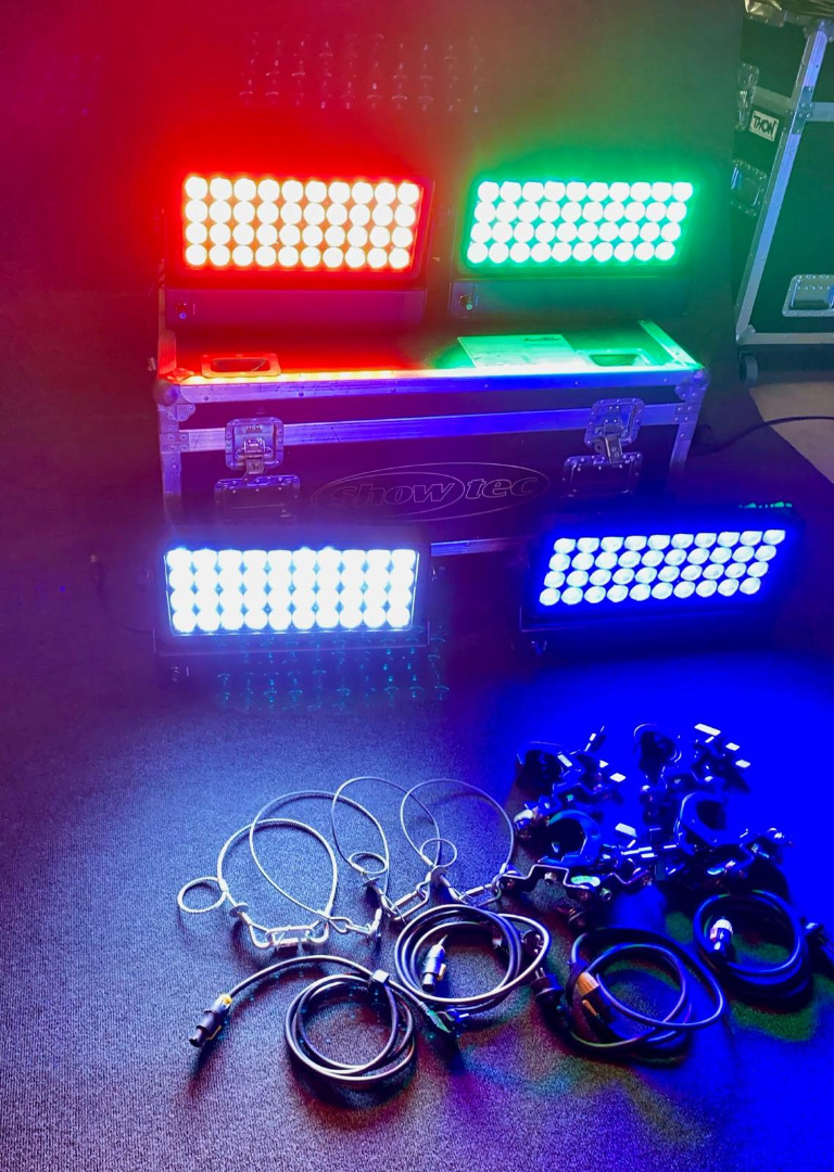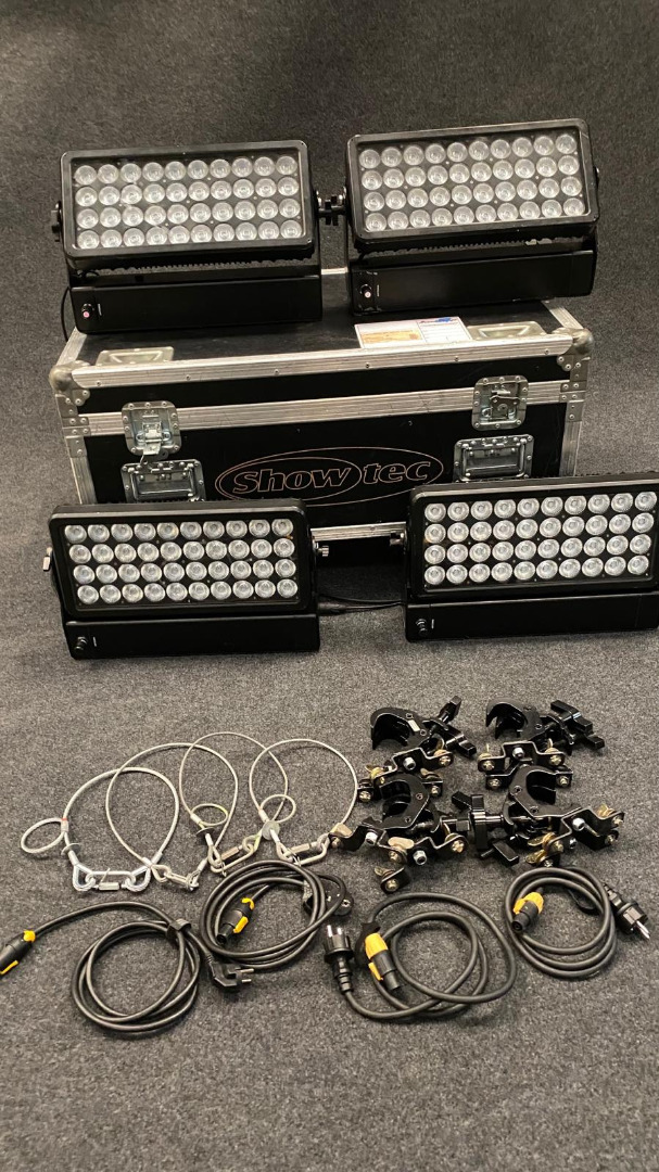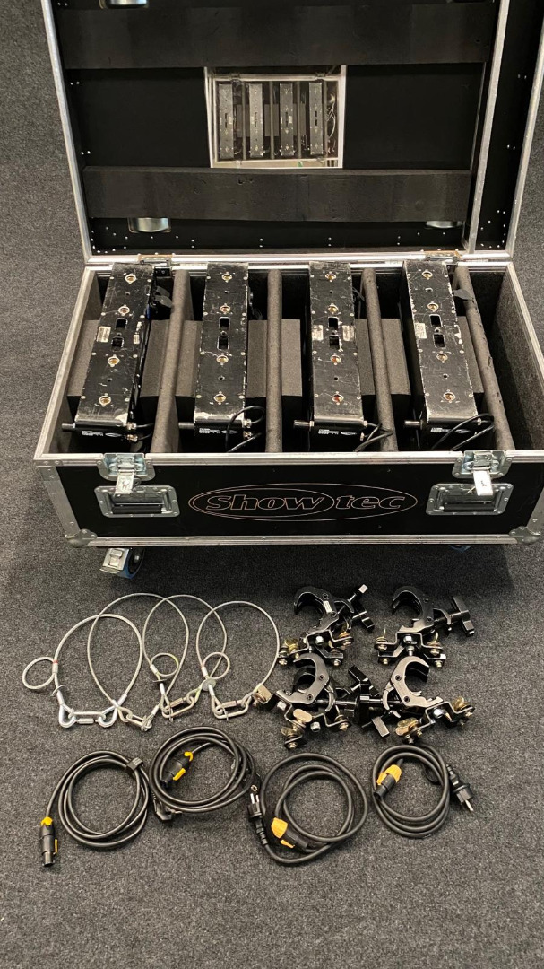 Verkauft werden 2 Sets mit je 4 x Helix 4000 Q IP 54, Case, Kabel, Safety und Klemmen. 15 Grad Öffnungswinkel und WDMX.