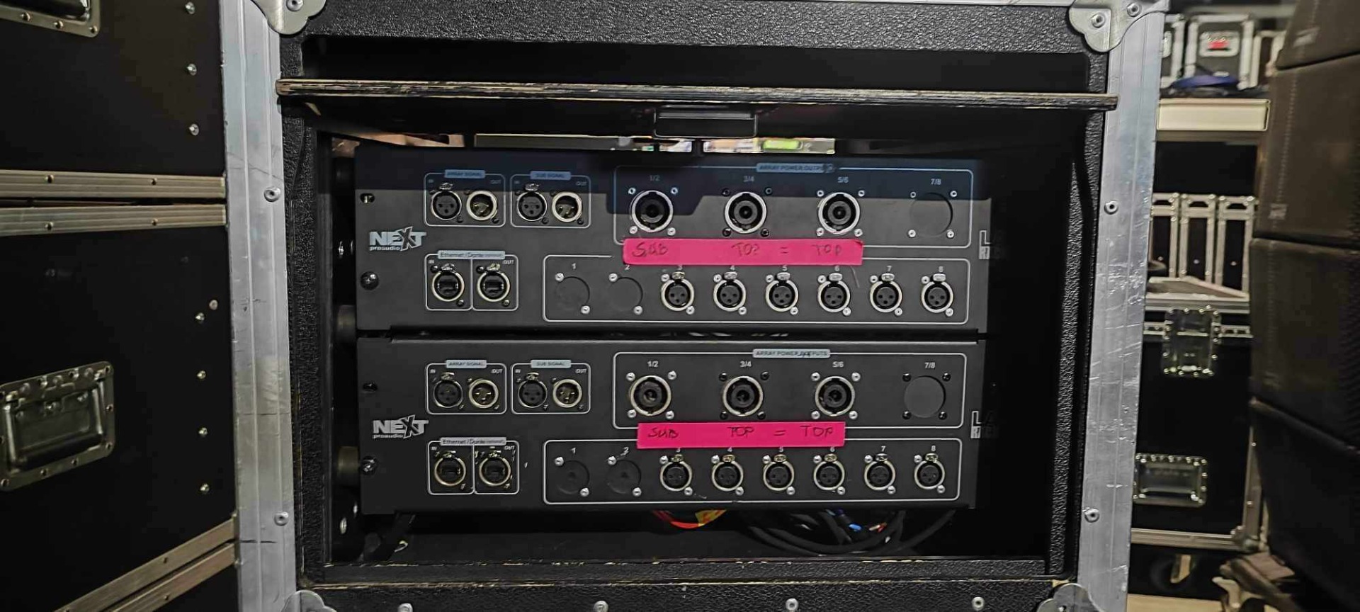 2xPowersoft Audio X8, 8x3000watts/4 ohm with LA-rack patchbay and LA rack power distribution