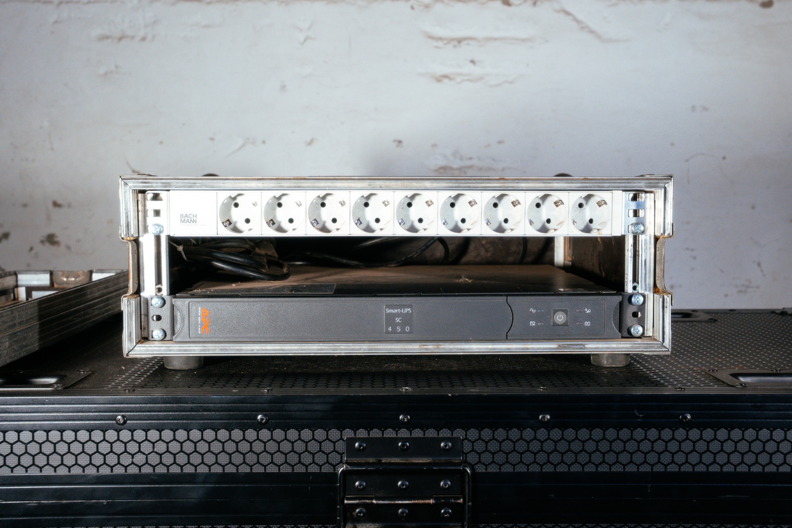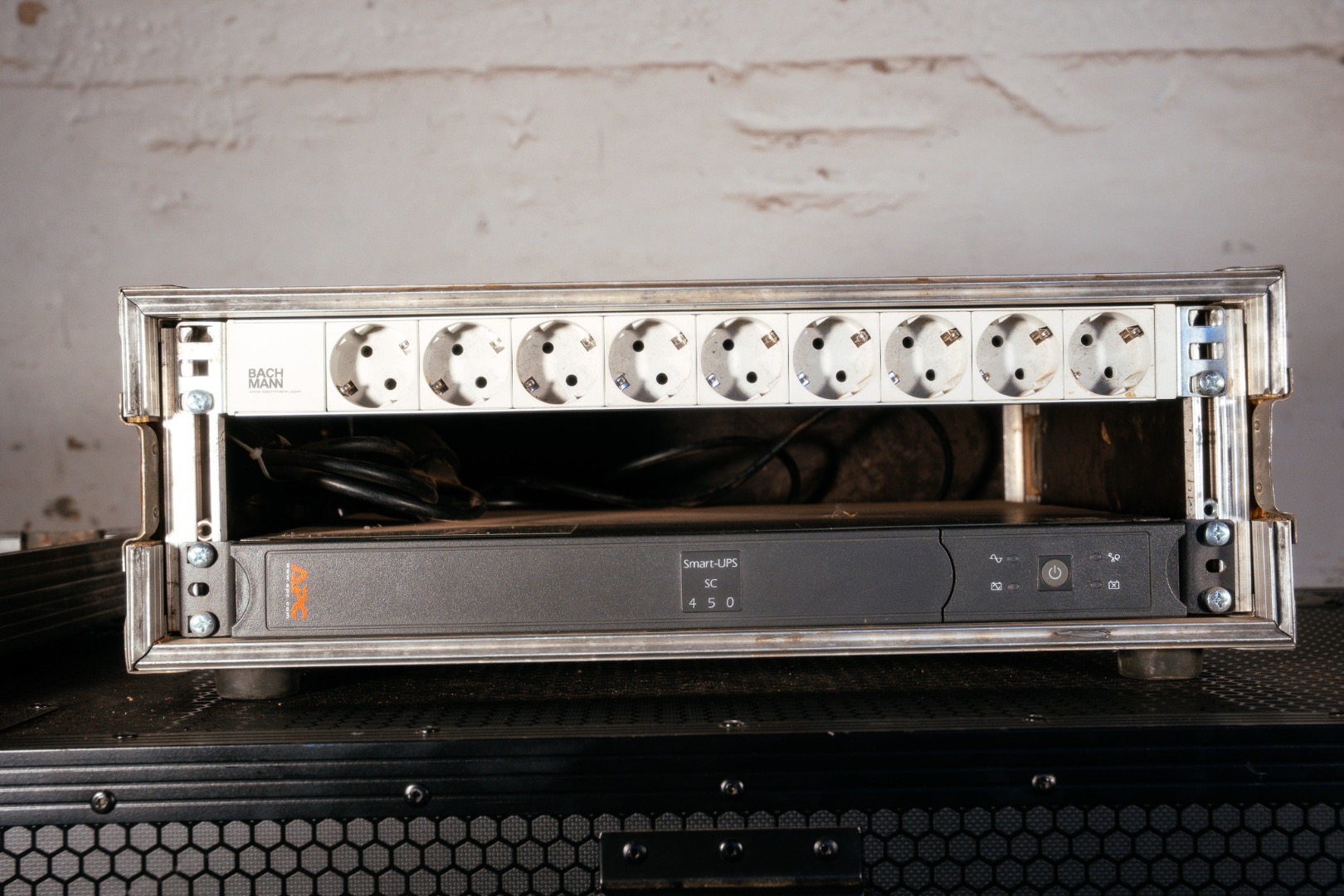 1x Smart UPS SC450 USV von APC in 19" Flightcase mit 9fach 19" Schukoleiste