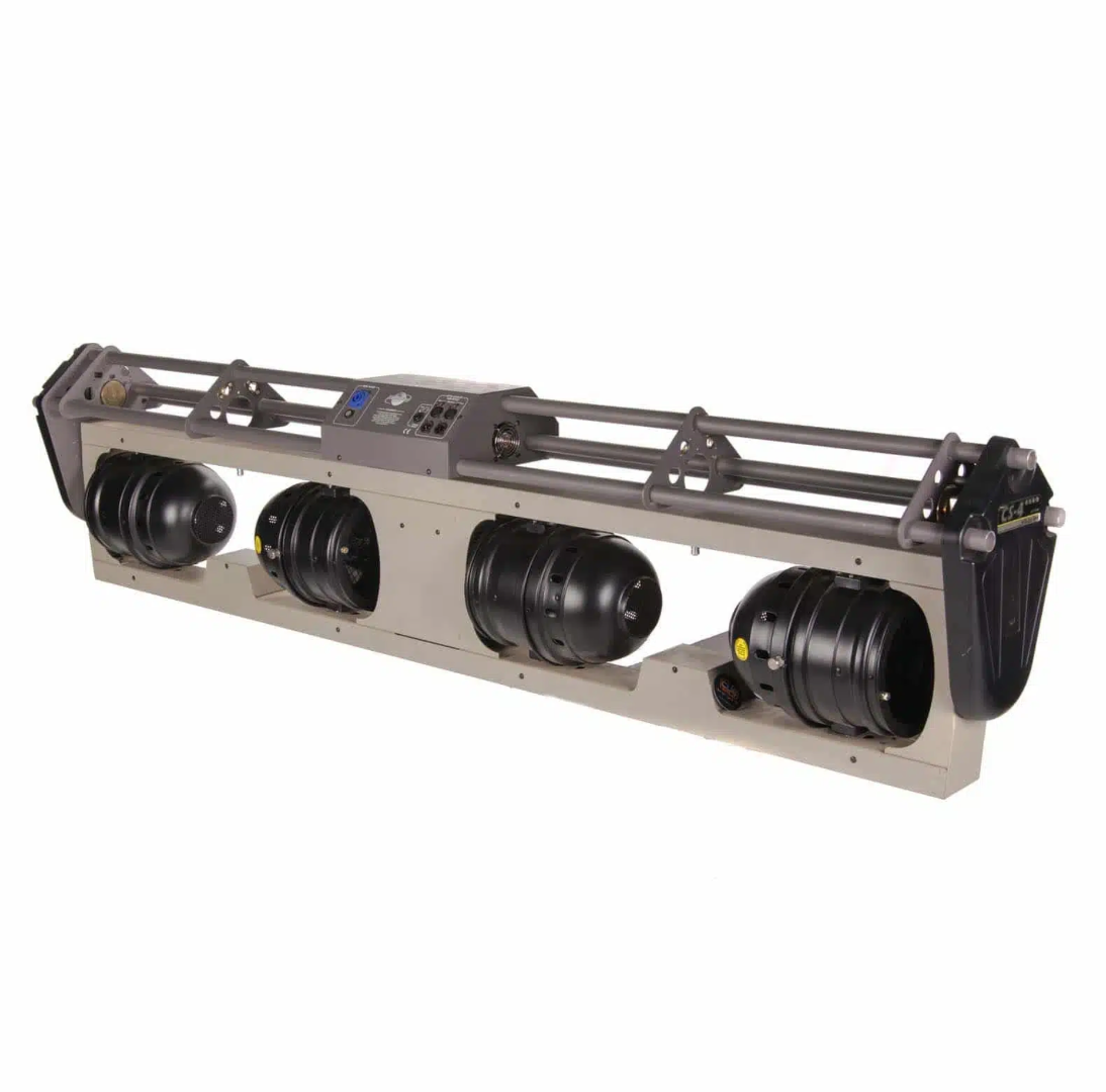 Der CS4 des italienischen Lampenherstellers Studio Due ist ein Moving ACL Bar mit insgesamt vier Scheinwerfern, die über einen eingebauten elektrischen Dimmer verfügen. Jedes der vier Leuchtmittel erzeugt 250 Watt und die Ansteuerung des Moving ACL Bar erfolgt in 8 oder 16 Bit Auflösung auf über bis zu 20 DMX-Kanälen. Der 31kg schwere Studio Due CS4 / C250 ermöglicht eine flexiblere und individuellere Bühnengestaltung und verfügt über ein RS-485 Interface.