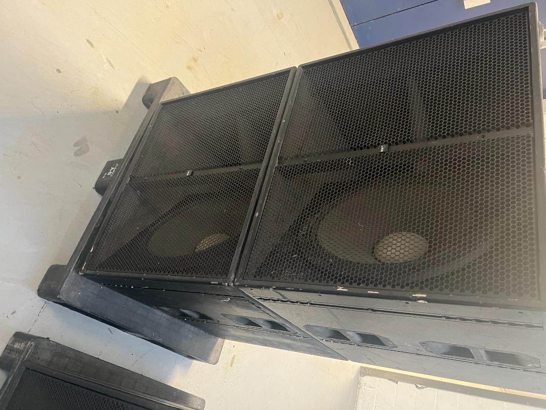 Heavily used, cabinet OK. Woofer OK.