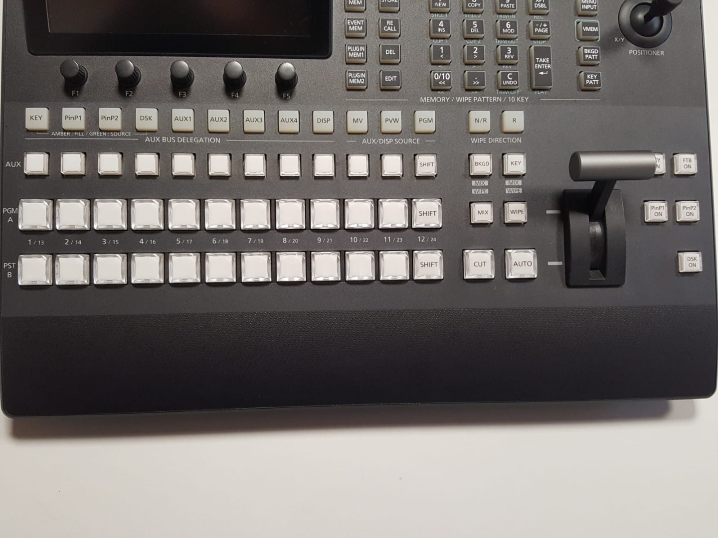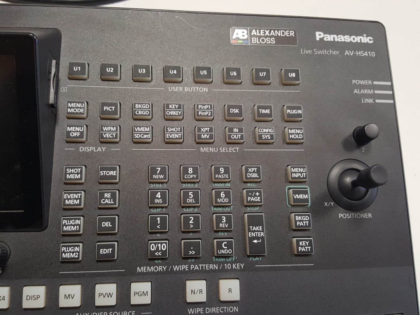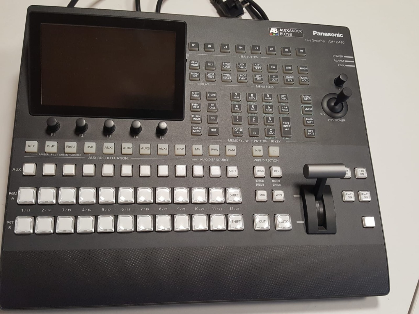 Der AV-HS410 ist ein HD / SD umschaltbarer 1ME-Mischer, der mit seiner großen Auswahl an Ein- und Ausgängen, der vielen attraktiven Effekte und der Systemerweiterbarkeit mit vielen High-End-Mischern konkurrieren kann. In der Standardausstattung hat er 9 Eingänge und kann bei Installation von Erweiterungsboards auch auf eine maximale Kapazität von 13 Eingängen erweitert werden. Der Mischer bietet vielseitige Effekte, zum Beispiel Übergänge mit digitalen Videoeffekten und Primatte®-Chromakeying-Anwendungen. Der LCD-Farbmonitor mit 178 mm (7 Zoll) erleichtert die Bedienung durch den übersichtlichen Einstellungsbildschirm, eine Speicher-Vorschau, verbesserte MultiViewer-Funktionen und eine Schaltflächenanordnung, die das Arbeiten bei Live-Übertragungen erheblich erleichtert.