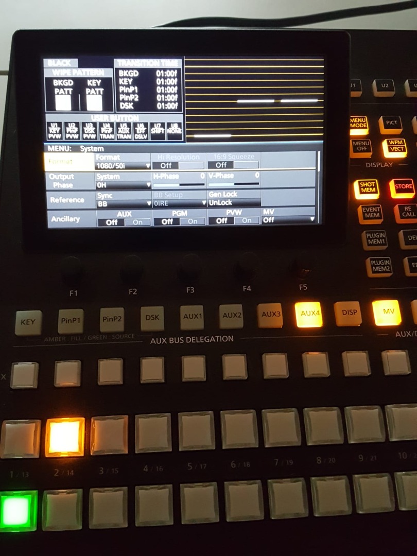 5x HD-SDI (Belegbar PGM, PVW, AUX1 bis AUX4,Multiview, CLN, KEYOUT und MEM PVW