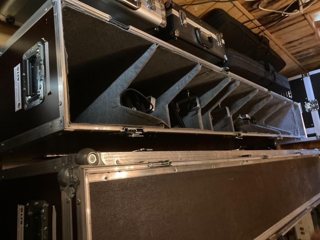 200 € je Transportcase auf Rollen (250x30x80 cm)