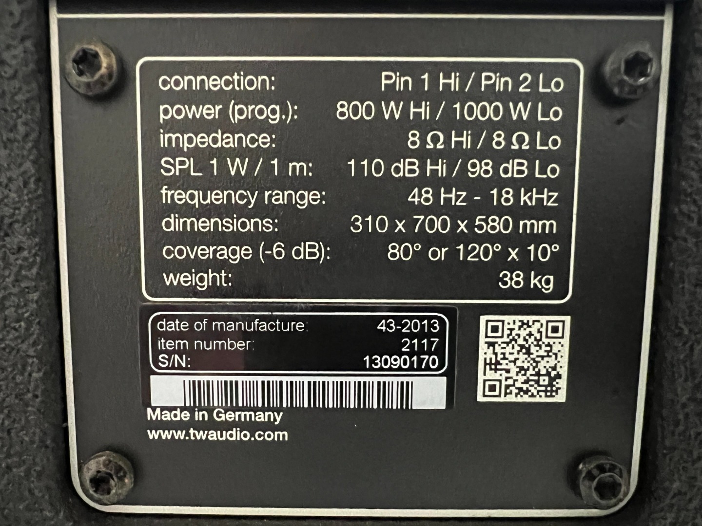 - 12x TWAUDiO VERA36 2x10"/2x8"/2x1,4" line array