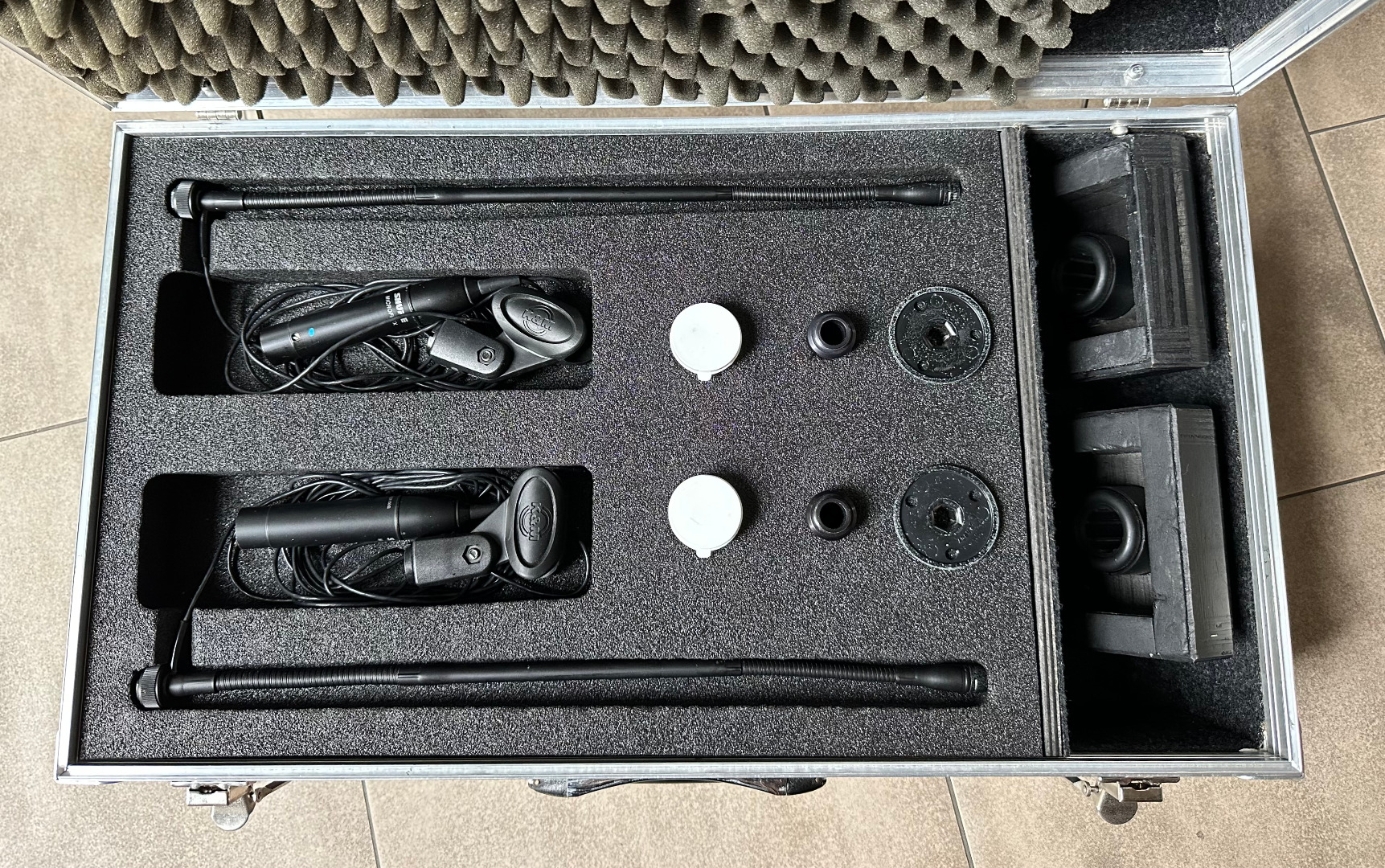 In einem Koffer befinden sich zwei Schwanenhalsmikrofone mit Zubehör.