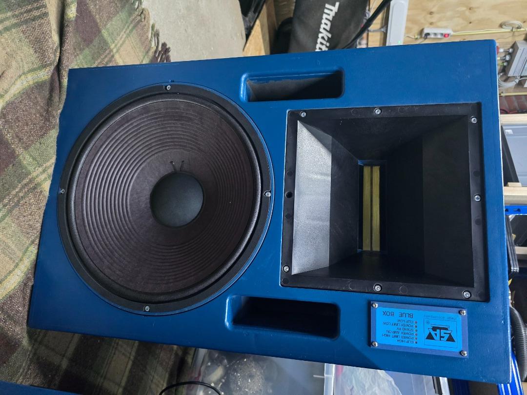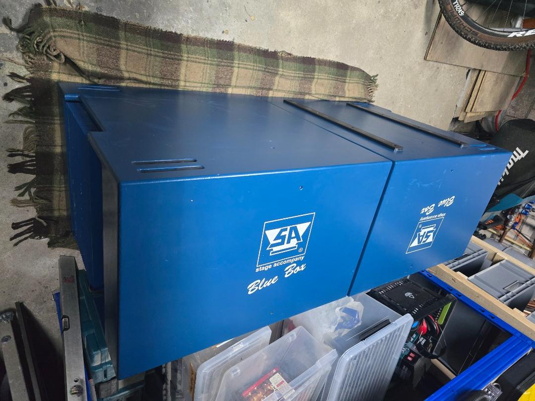 For sale: Set blue box speakers from stage accompany.