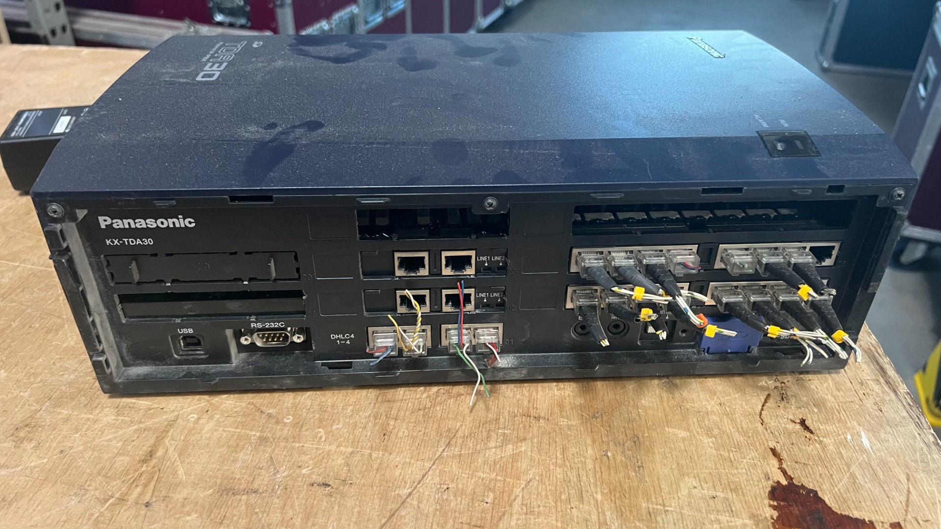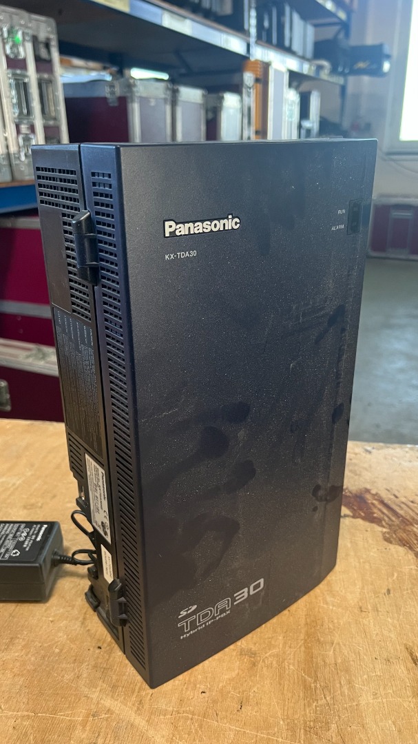 Professionelle Panasonic KX-TDA30 Hybrid IP-PBX-Telefonanlage – robuste Kommunikationszentrale für Büros, Veranstaltungs- oder Installationsumgebungen. Unterstützt analoge, digitale, DECT und VoIP-Telefonie und eignet sich für mittlere Kommunikationsnetze.
