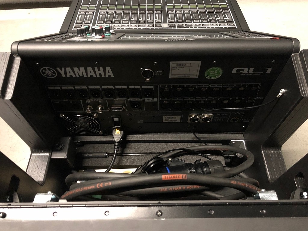 -Yamaha QL1 mixing consoles from 2019 have been designed by Yamaha as a condensed and concentrated version of their CL series mixing consoles. Inheriting many of the same features as the CL series including built-in Dante network capabilities, the QL series is an all-in-one solution for medium scale live sound, corporate events, broadcast or installations.