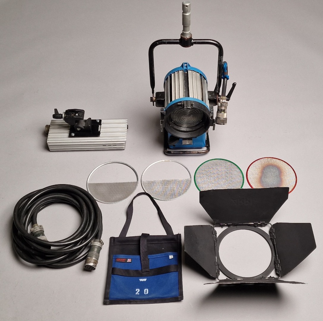 Dieses HMI Set besteht aus dem 575 W Lampenkopf, einem 4-Flügel Tor, einem 7 m Lampenkabel mit hochwertigen und robusten Cannon Verbinder, einem elektronischen Vorschaltgerät in kompakter Bauweise und integrierter Uniklemme und einschließlich einem Satz Tüll und Seide in einem praktischen Beutel. Die Lampe hat Gebrauchsspuren aber funktional in sehr gutem Zustand.