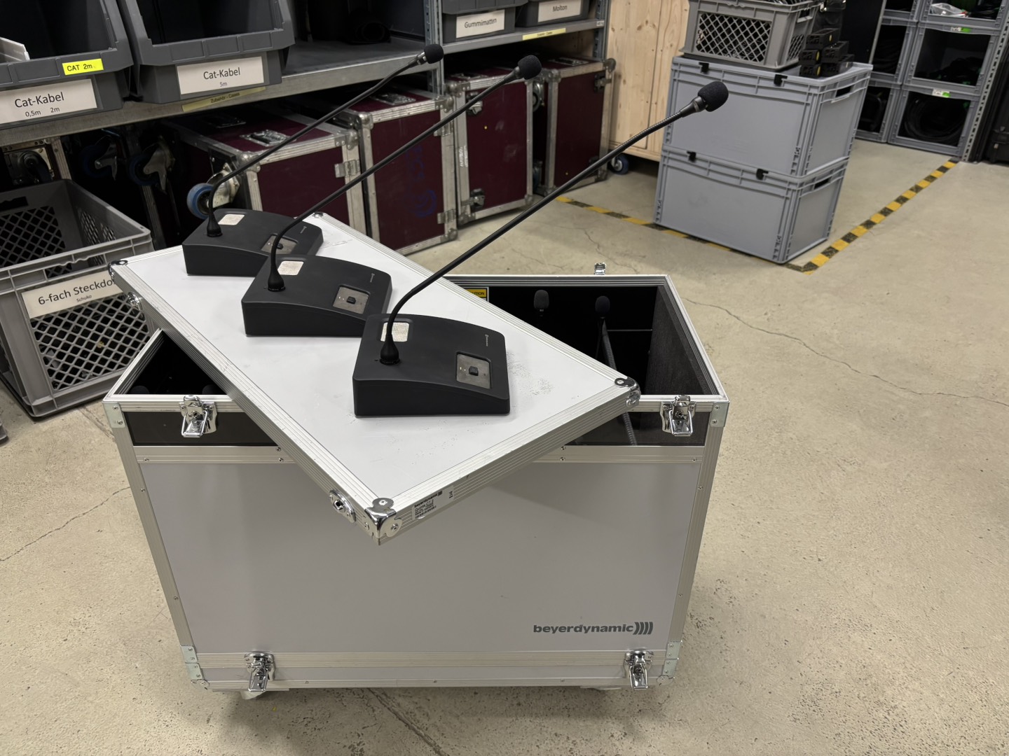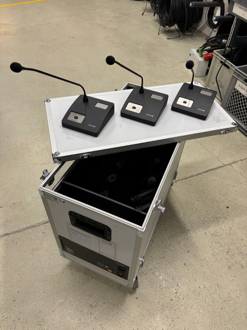 Zum Verkauf steht ein Set mit 10x Sprechstellen Quinta MU21 + 10 Mikrofone und einem Lade- und Trnasportkoffer von Beyerdynamic Quinta CC2.