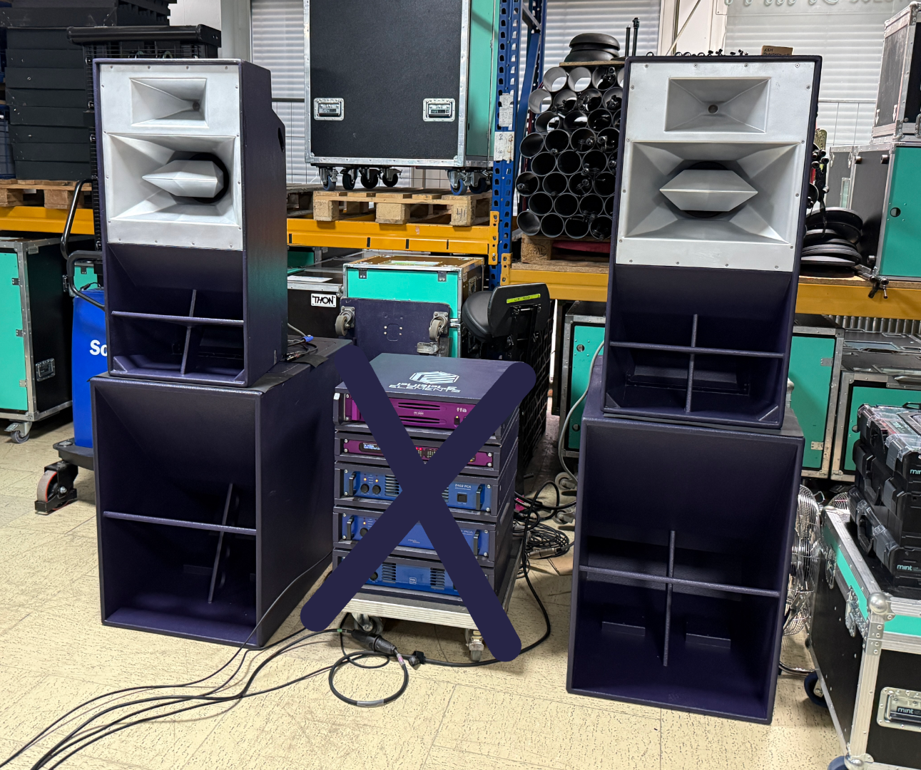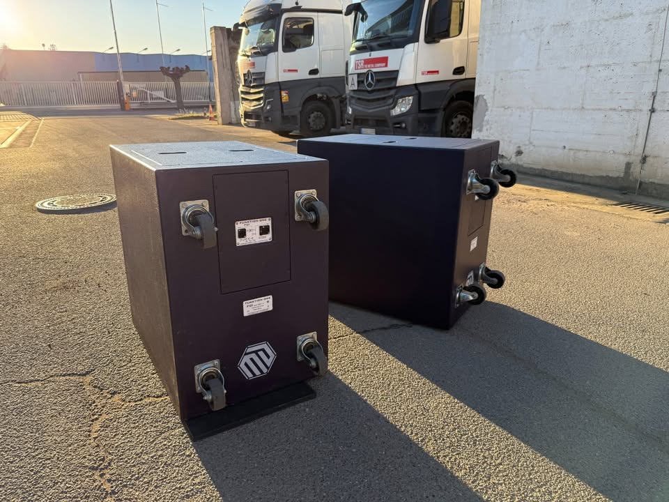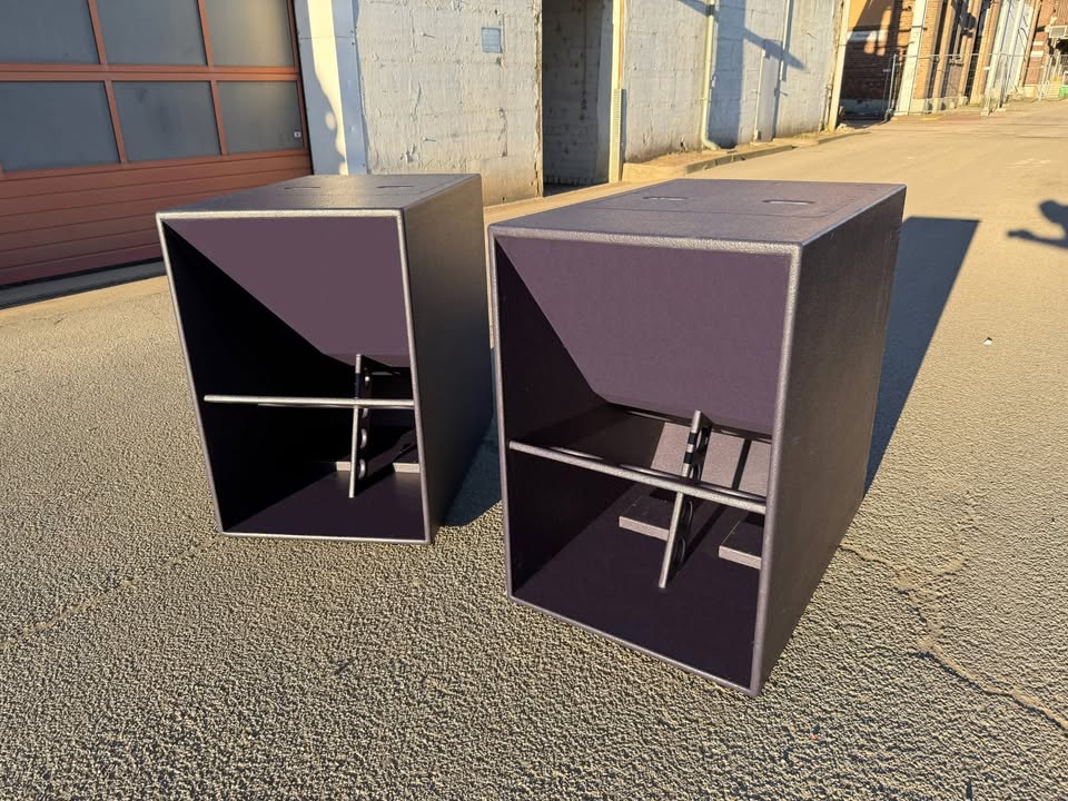 Zum Verkauf steht ein Set bestehend aus 2× Resolution 4 Touring Tops inklusive Wheelboards sowie 2× F121 horn-geladene Subwoofer.