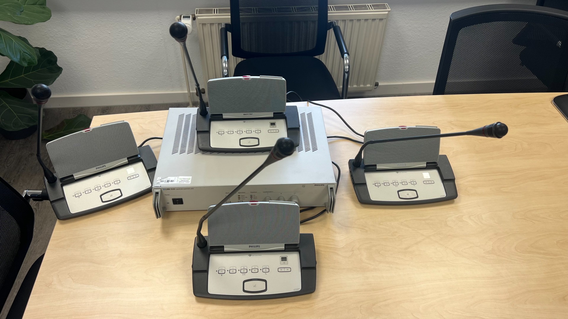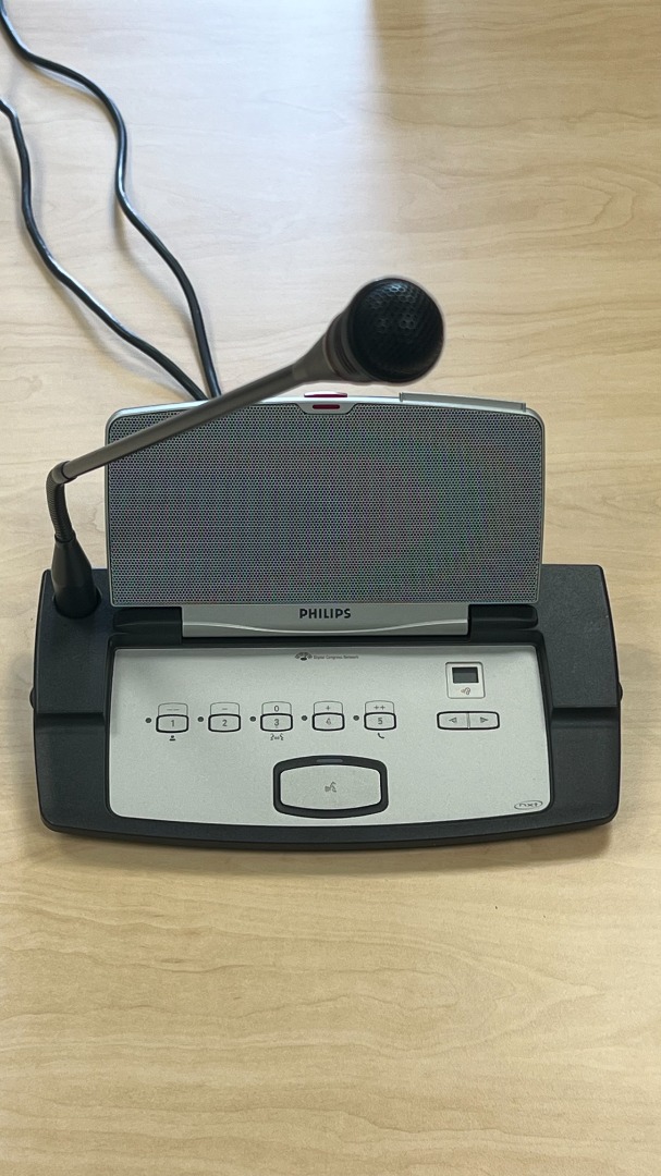 Verkauft wird ein geprüftes und funktionstüchtiges Konferenzsystem der Marke Philips, ideal für Kongresse, Tagungen, Sitzungen oder Veranstaltungsräume.