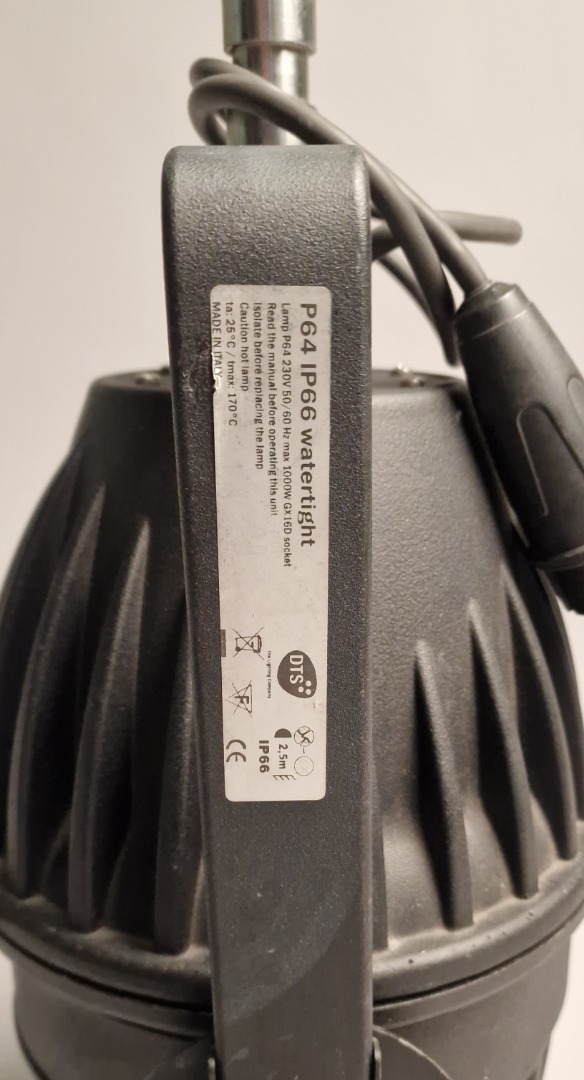 Es handelt sich hier um wasserfeste (IP66) Par64, bis zu 1000 W bestückbar, inkl. 1000 W Leuchtmittel.