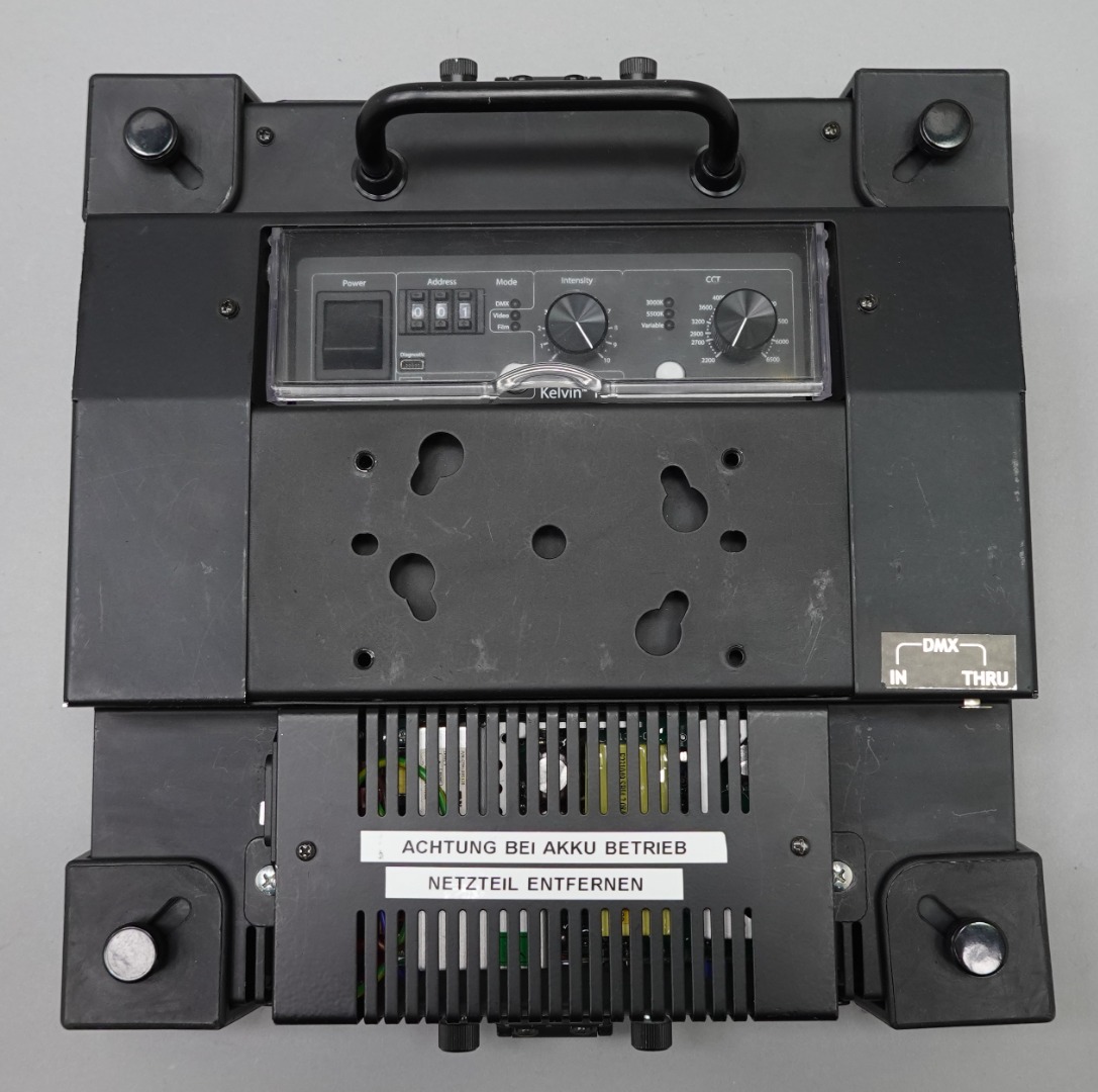 Diese LED-Fläche ist bicolor von 2200° K bis 6500° K, stufenlos dimmbar und DMX fähig. Die Lampe kommt mit 2 anschraubbaren Toren einem Diffusor und einer Mounting Plate.