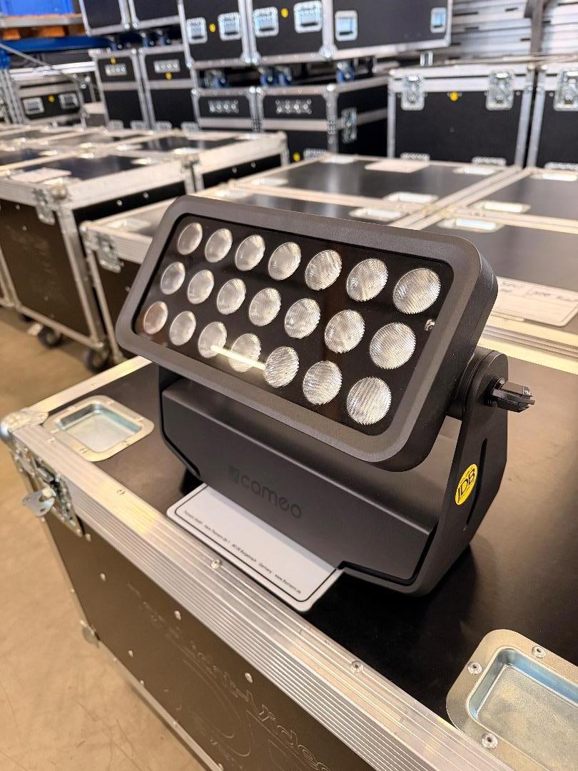 Der Cameo ZENIT® W300 ist mit insgesamt einundzwanzig 15W RGBW LEDs, einem hohen Lichtstrom von 10,000 lm und IP65-Klassifizierung ein besonders leistungsfähiges Washlight für den anspruchsvollen Außeneinsatz. Er besitzt neben RDM- und DMX- Steuermöglichkeiten einen integrierten 2.4 GHz W-DMX™-Transceiver von Wireless Solution Sweden AB zur praktischen drahtlosen Ansteuerung sowie zum drahtlosen Master-und-Slave-Betrieb. Mit einer Vielzahl wirkungsvoller automatisierter Programme eignet er sich auch als Standalone-Gerät.
