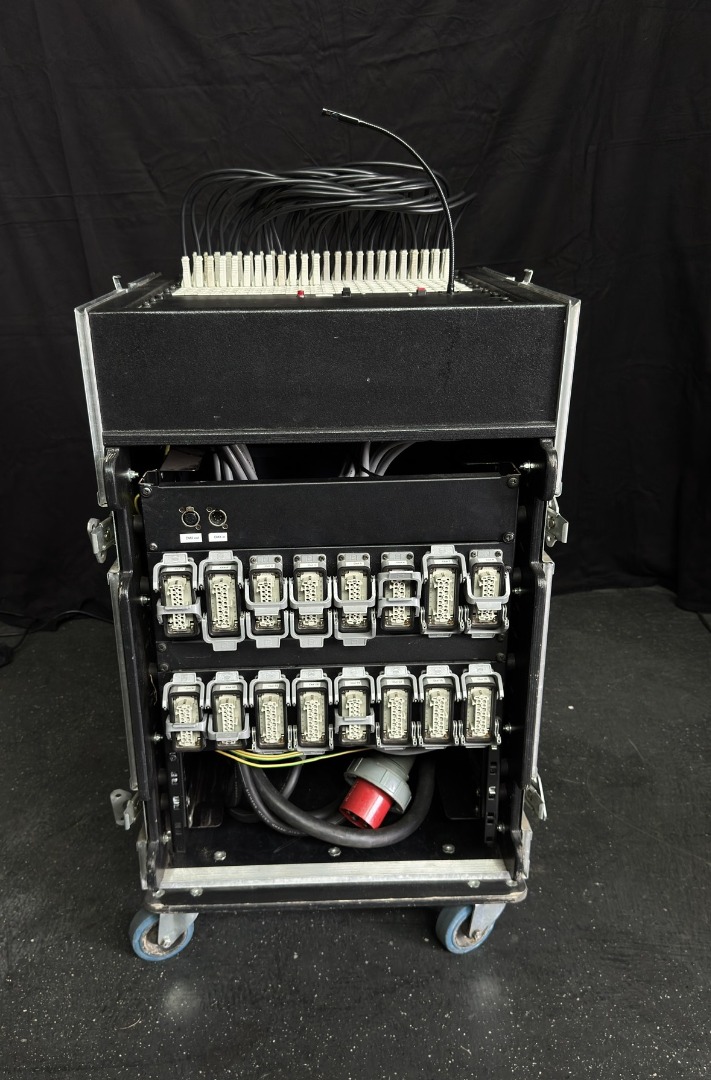 - Einspeisung über Unterverteilung 63A oder 125A mit CEE 3P+N+PE Stecker montiert an 2m Kabel oder über 250A Powerlock mit - Powerlock-Stecker für 48 x 3,7kVA Rack