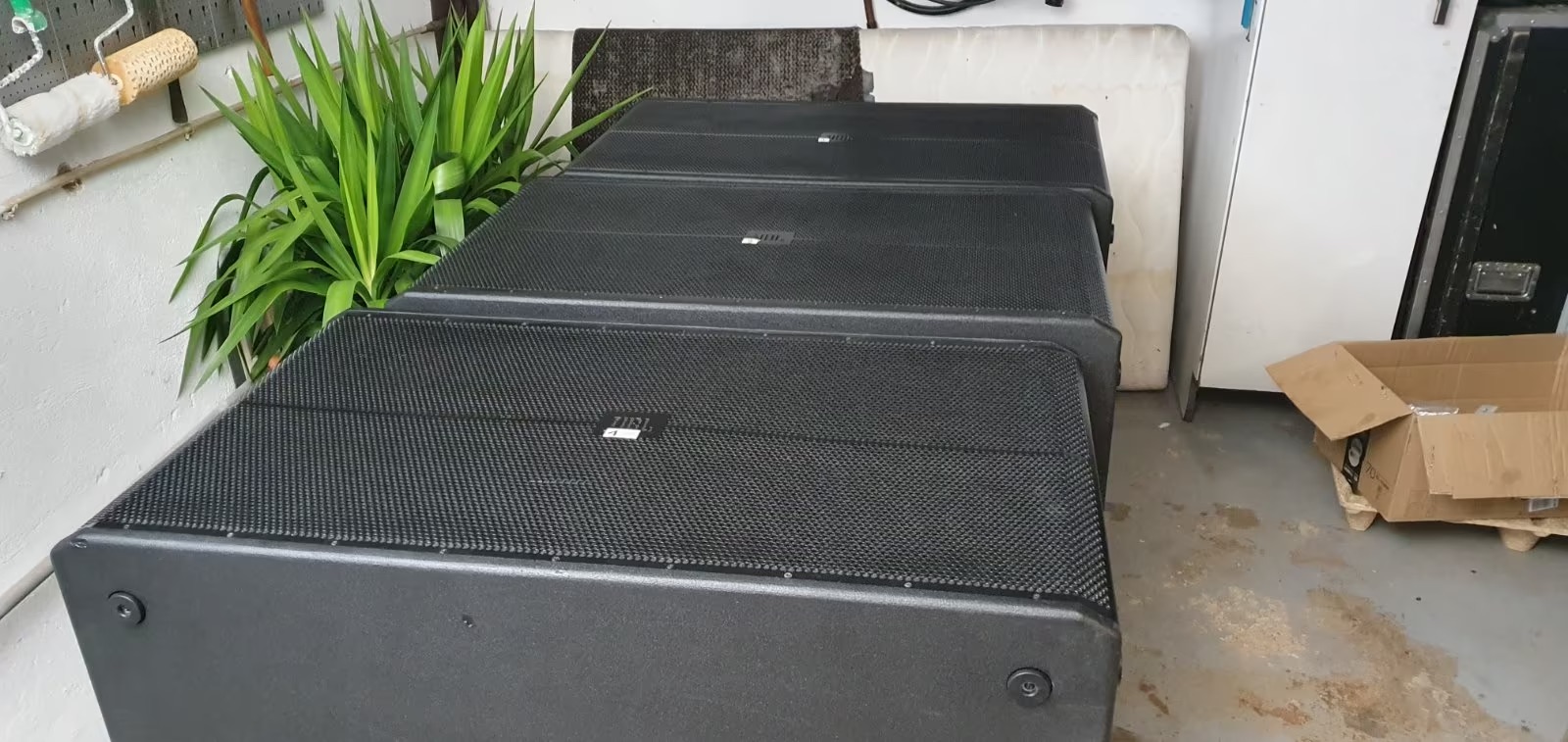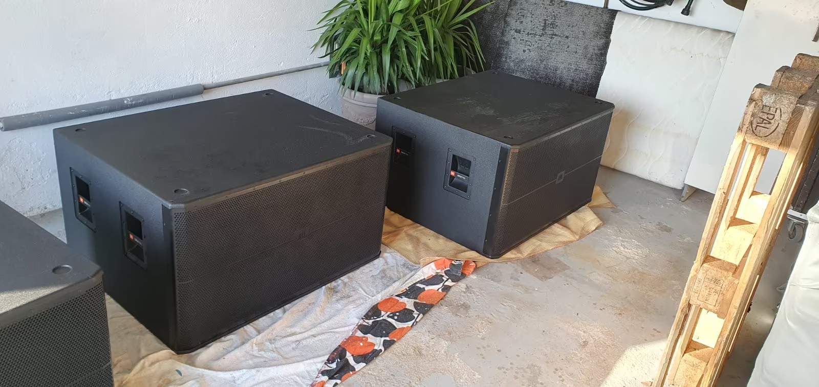 Die Subwoofer kann man als quasi neuwertig bezeichnen. Ich habe sie privat erworben und sie waren vor meiner Zeit in einem Theater fest installiert. Deshalb sind auch die Gitter und vor allem der Lack fast unbeschadet. Der Lack am Gitter rostet auch nicht.