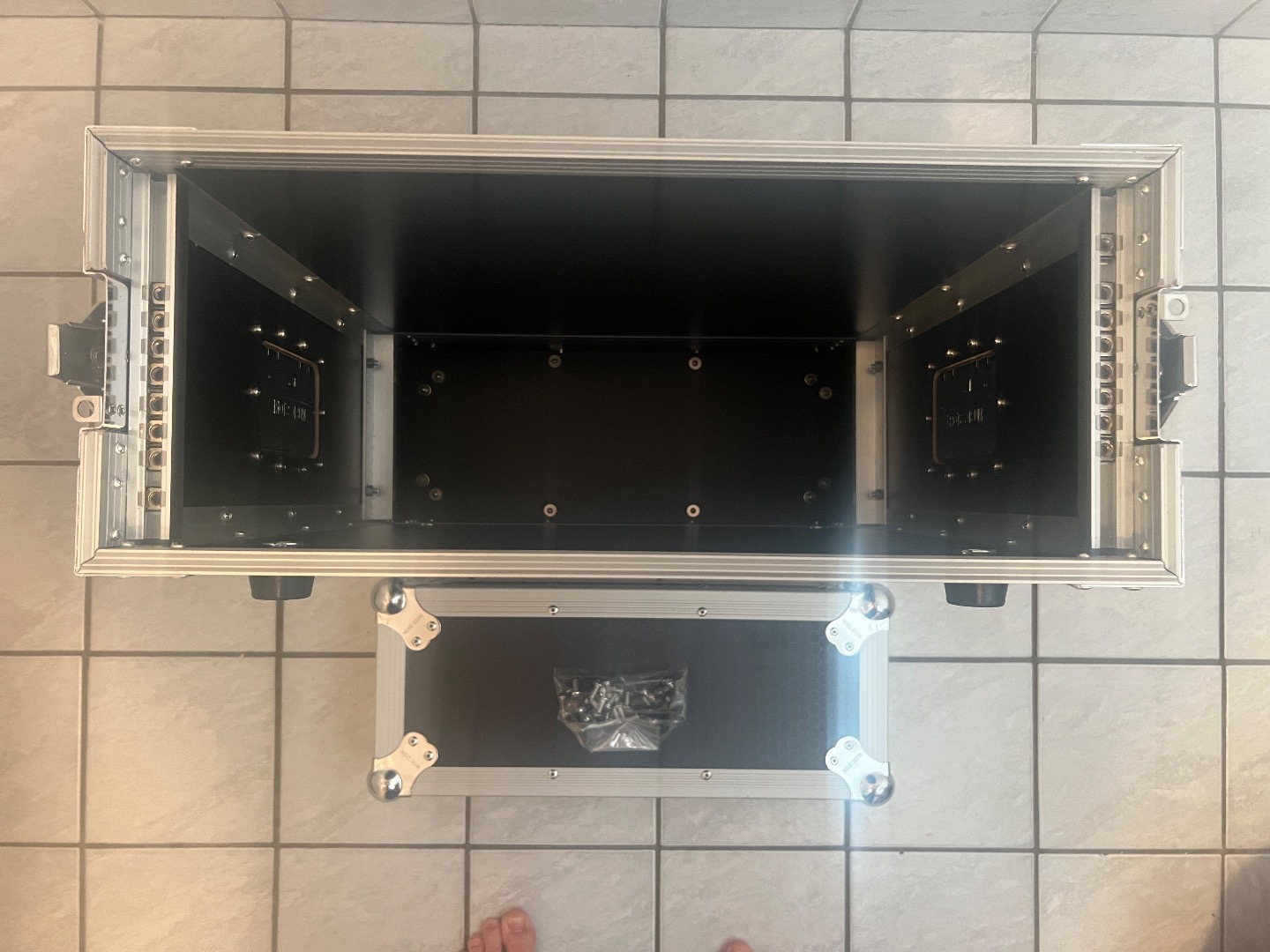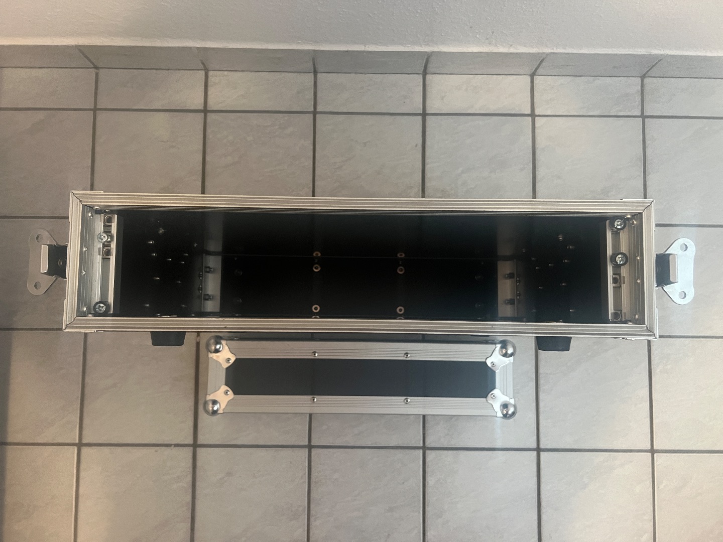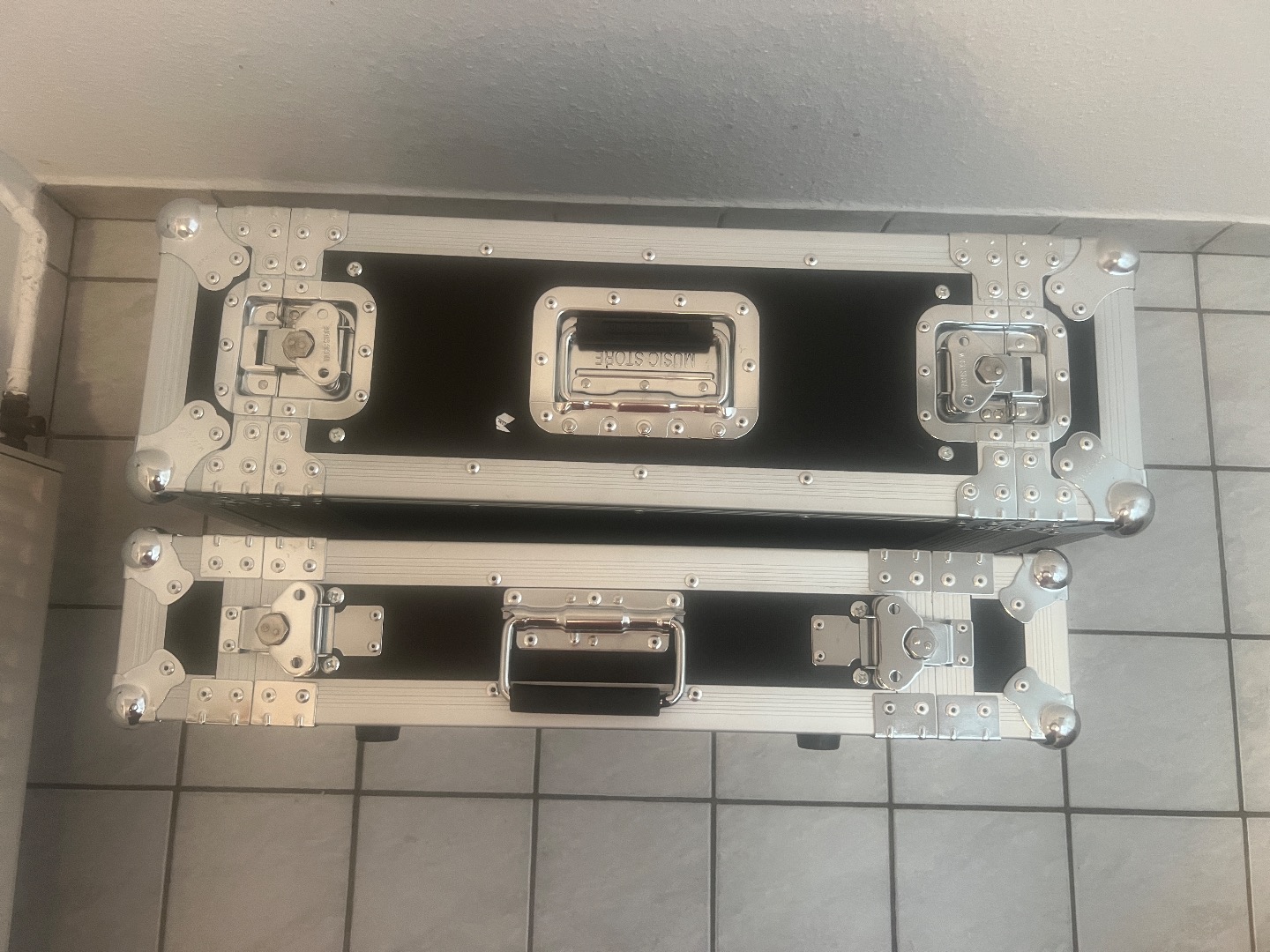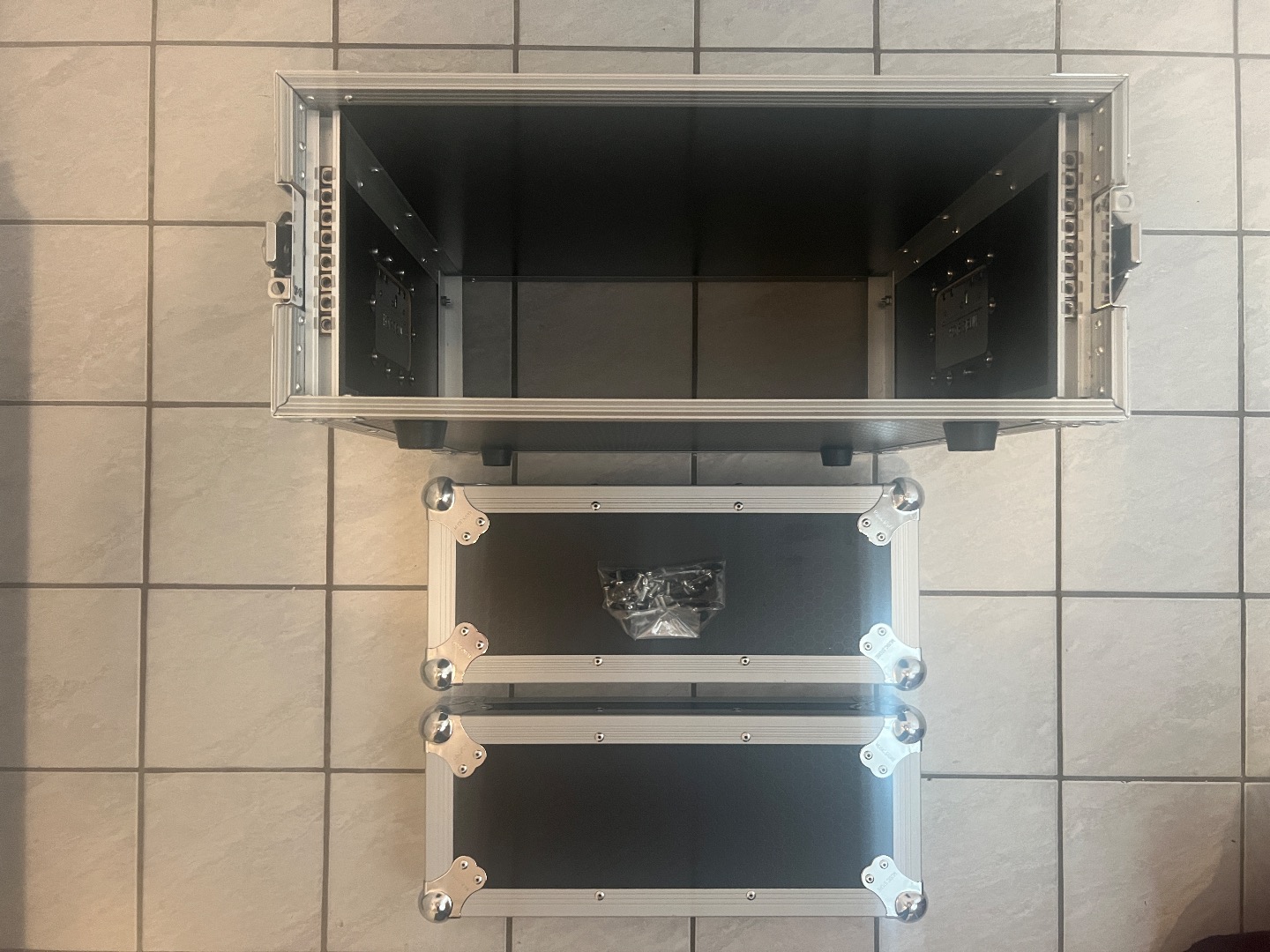 Beide Cases sind leer und bereit für deine Ausrüstung. Die schwarzen Koffer haben die typische Flight Case Bauweise mit verstärkten Ecken und sicheren Verschlüssen.